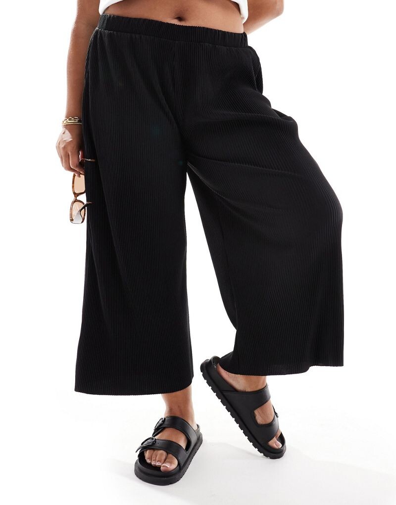Черные широкие плиссированные брюки-кюлоты ASOS DESIGN Curve