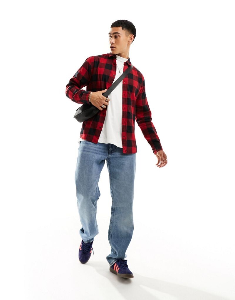 Jack & Jones Essentials — черно-красная рубашка в клетку с начесом