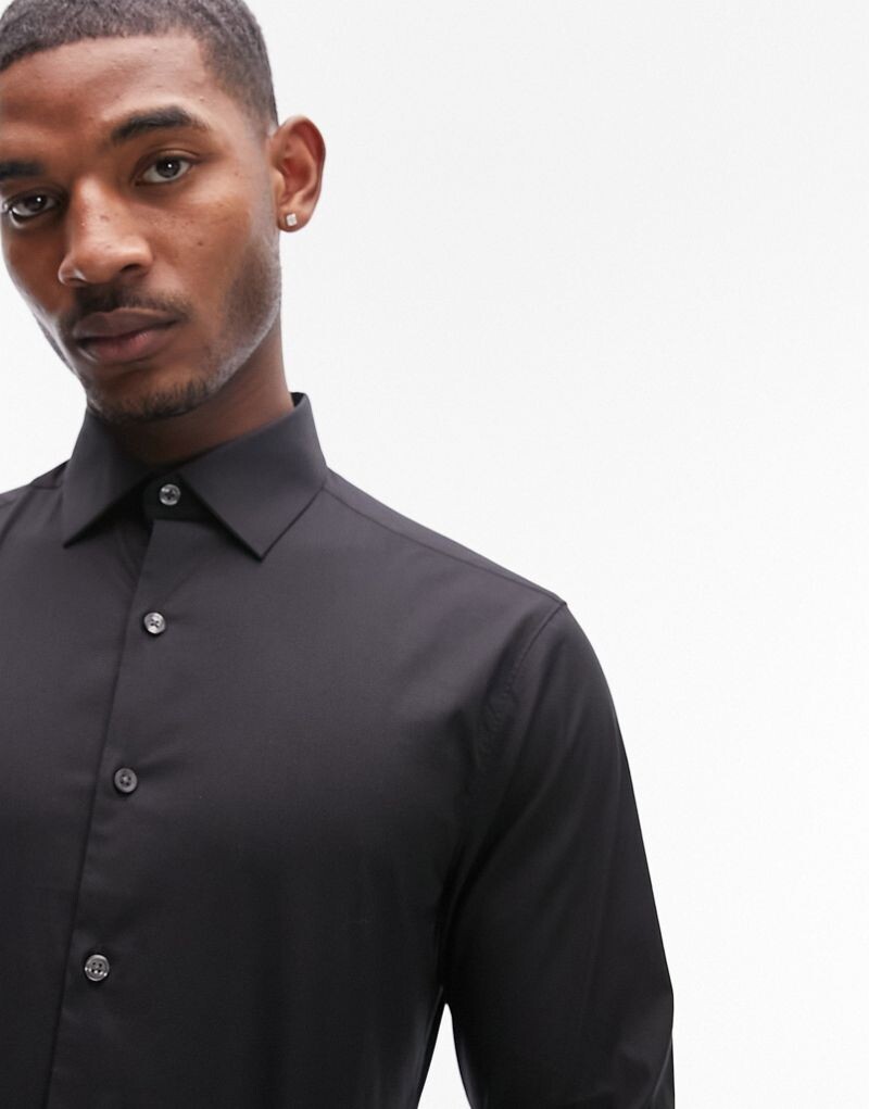 Topman - Черная классическая рубашка стрейч с длинными рукавами