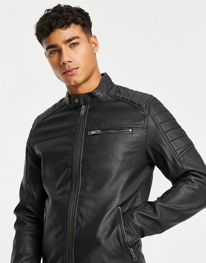 Черная беговая куртка из синтетической кожи Jack & Jones Essentials