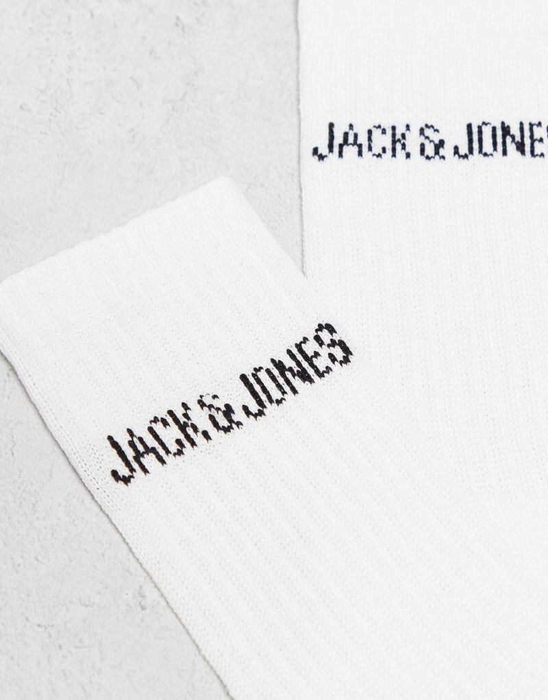 Набор из 5 белых носков в рубчик с логотипом Jack & Jones