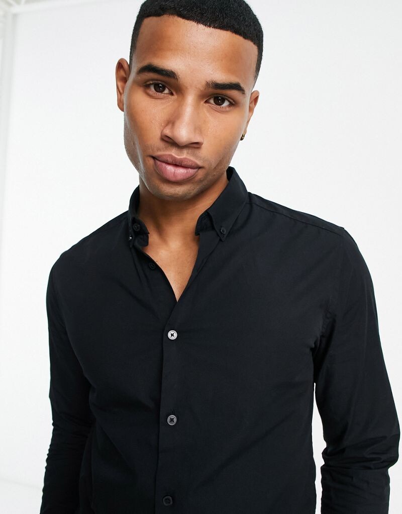 Черная рубашка узкого кроя из эластичного поплина ONLY