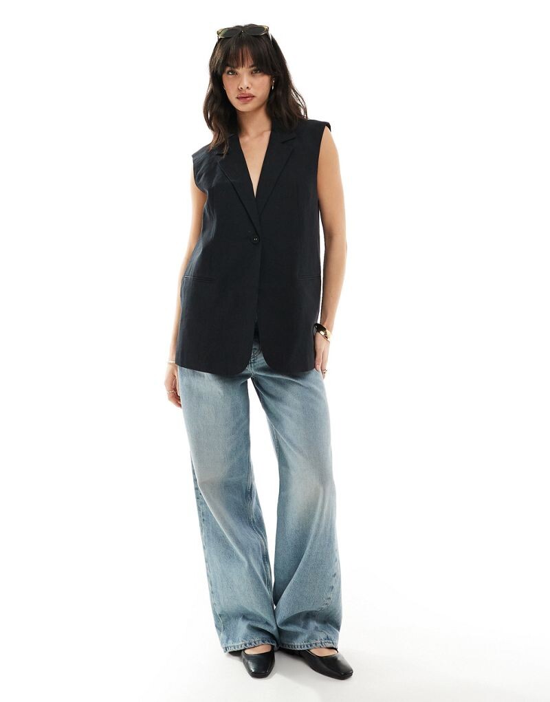 Черный льняной пиджак без рукавов ASOS DESIGN