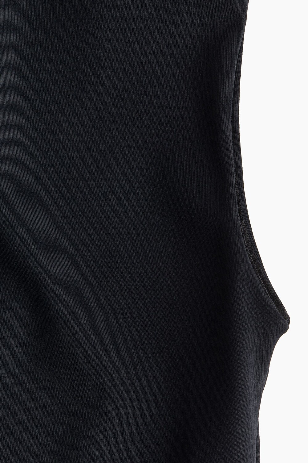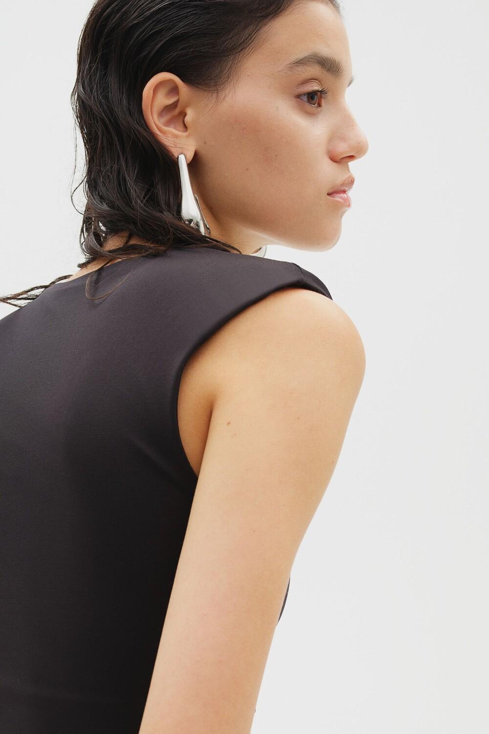 Облегающий топ без рукавов из эластичного трикотажа. Круглый вырез, объемные плечи.