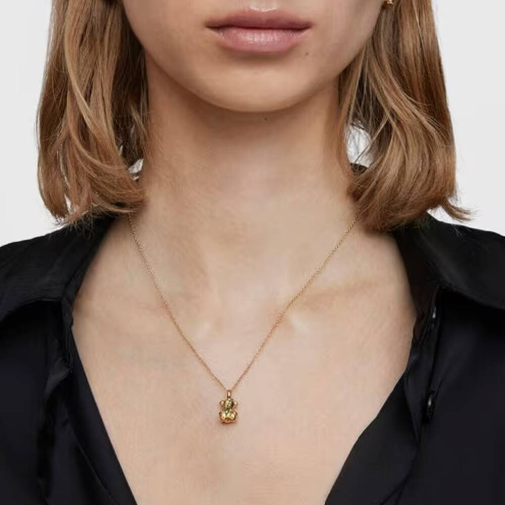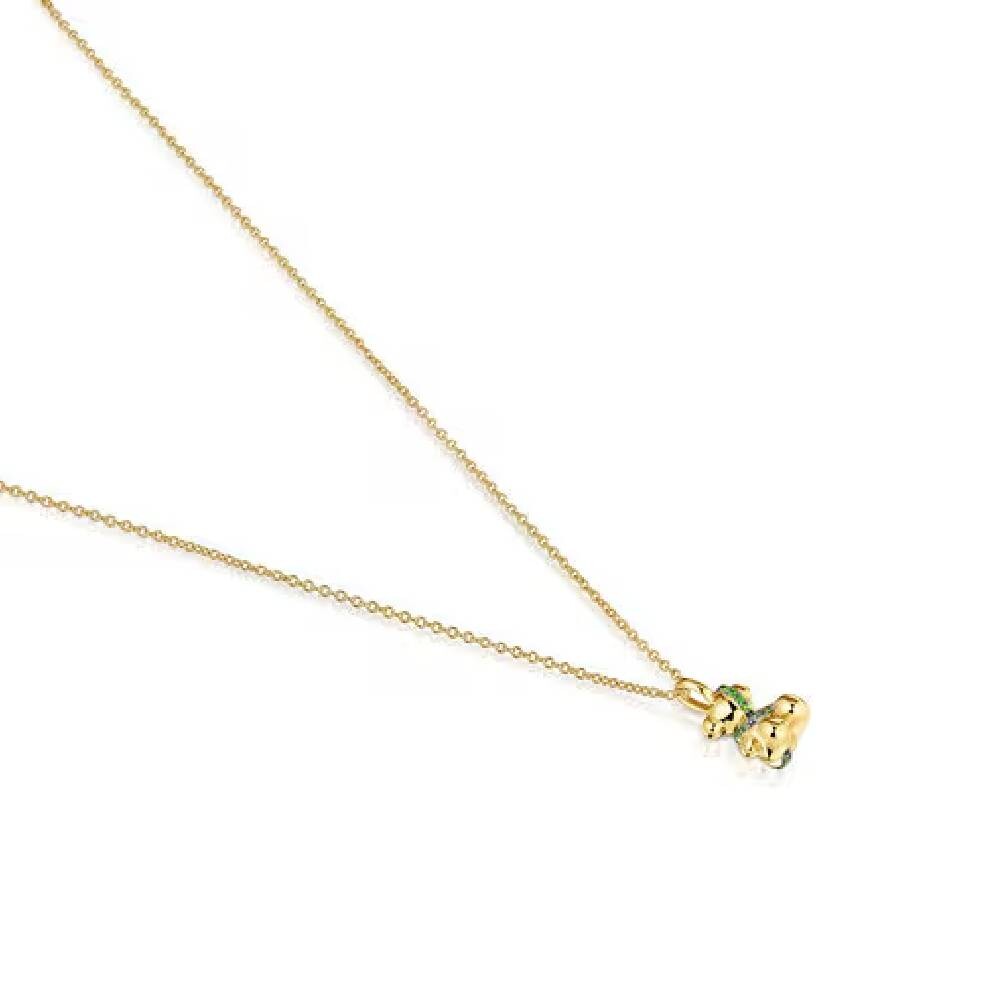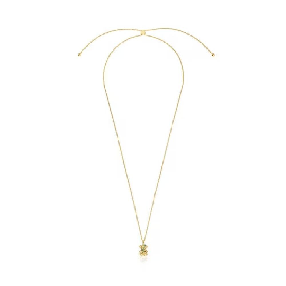 Среднее ожерелье TOUS Lligat с 18-каратным золотым покрытием поверх серебра с мотивом медведя и круглым хромдиопсидом.