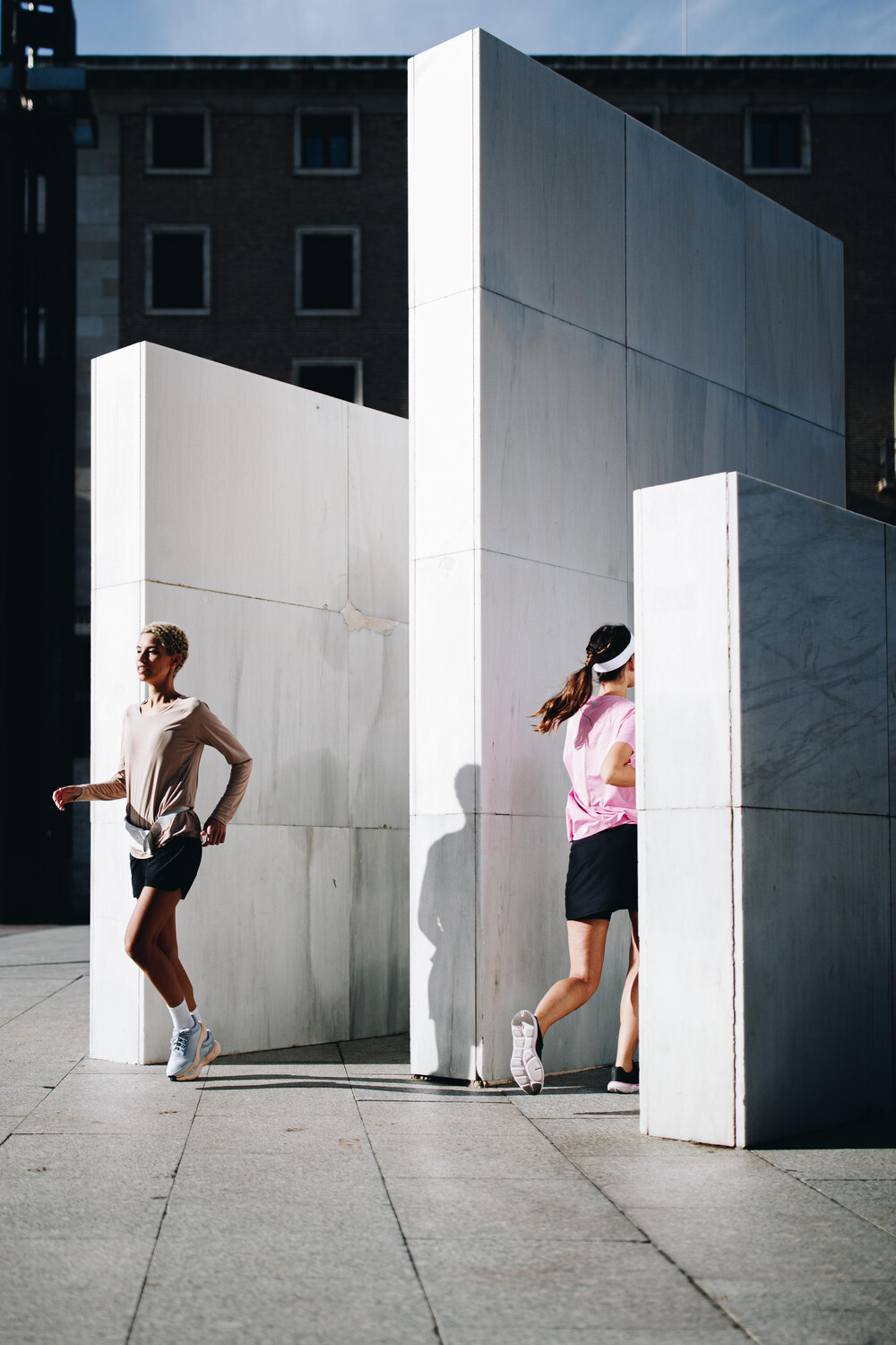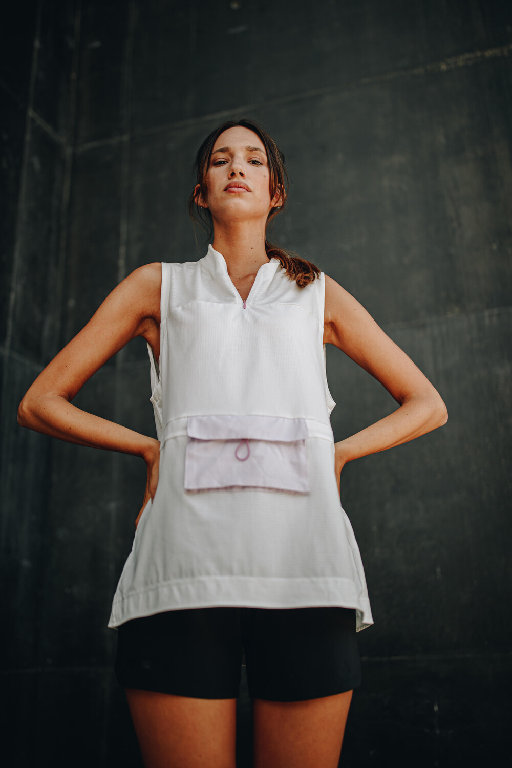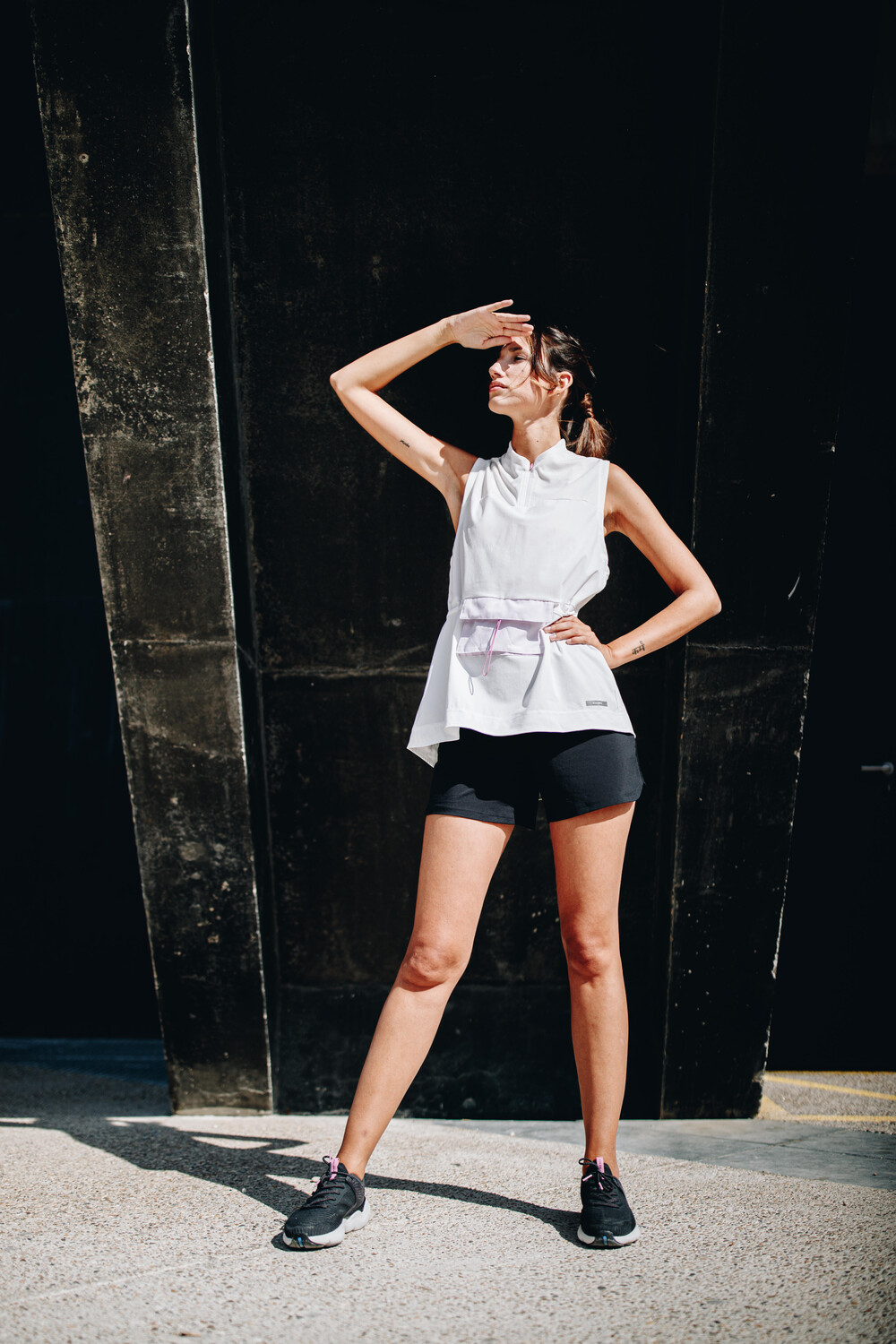 Эластичная ткань и широкий пояс обеспечивают оптимальный комфорт при беге летом. Карман на молнии предназначен для переноски личных вещей.