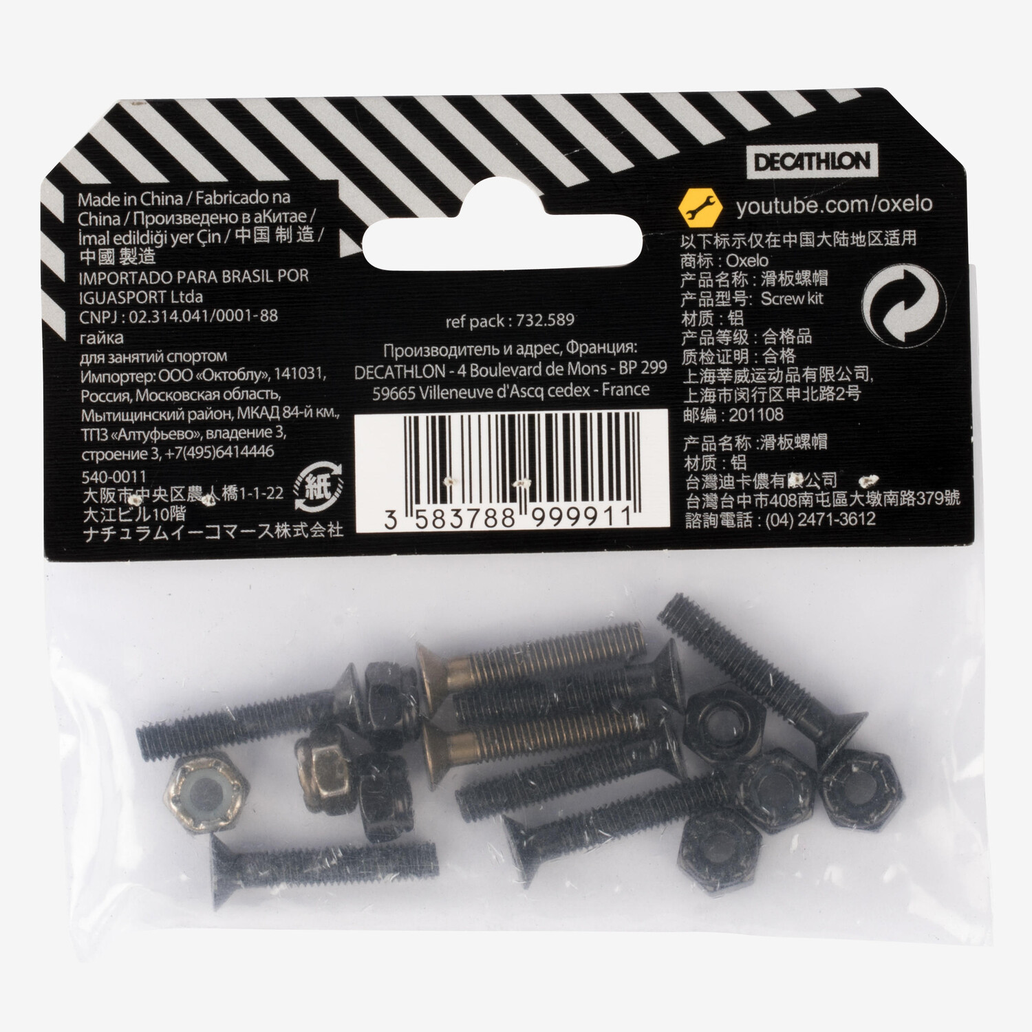 • шестигранная головка шестигранного ключа и гайки 10 мм, совместимые с инструментами для скейтборда oxelo.