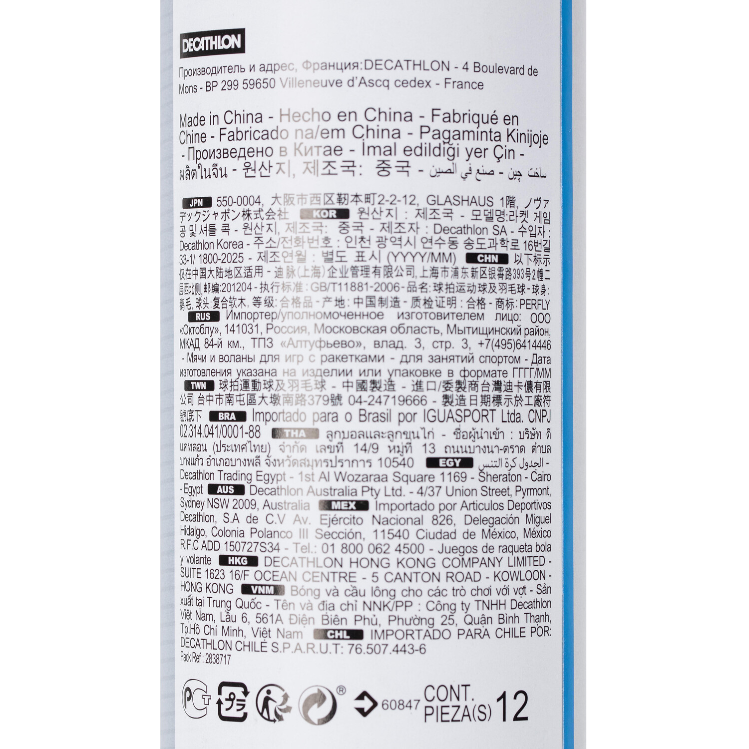 Головка волана: 50,0% этиленвинилацетат, 50,0% пробка.