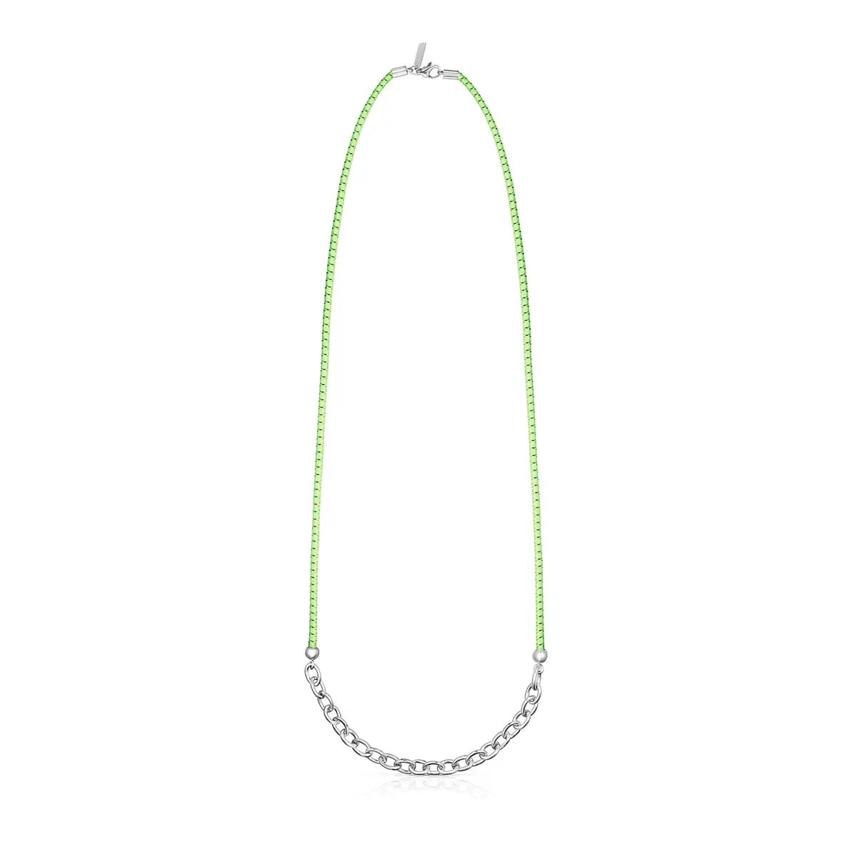 Пришло время праздновать, быть счастливым и снова веселиться с этим ожерельем из нержавеющей стали и эластичным шнуром цвета лайма из коллекции TOUS St. Tropez. Отпразднуйте по максимуму этим летом с самыми ослепительными украшениями! Ожерелье TOUS St. Tropez Elastic, сочетающее в себе цепочку с кольцами из нержавеющей стали и плетеный эластичный шнур цвета лайма.