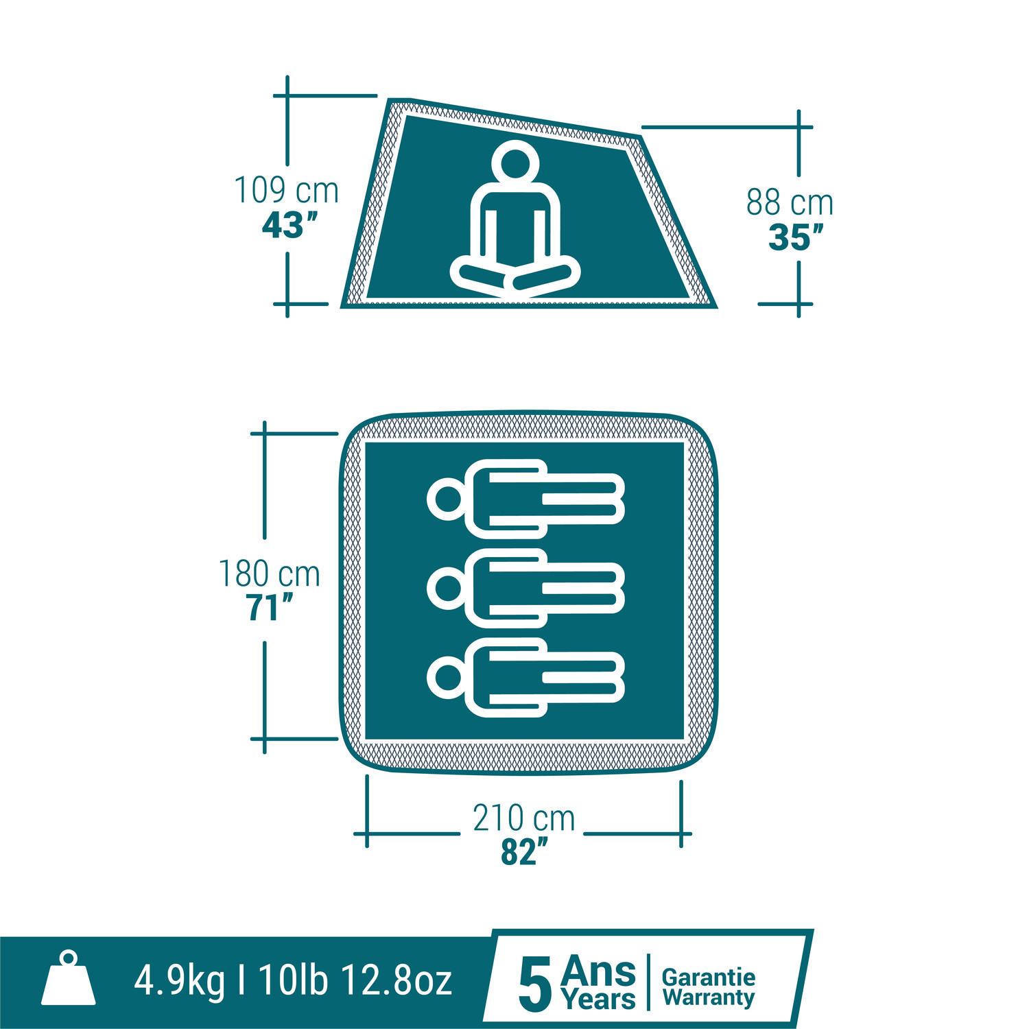 В этой новой трехместной модели 2 Seconds Fresh&Black мы поработали над боковыми и задними вентиляционными отверстиями, чтобы их было так же легко открывать, как и нашу 2-секундную палатку. Благодаря этой работе мы оснастили эту модель двумя новыми запатентованными вентиляционными отверстиями (двумя боковыми и одной задней).