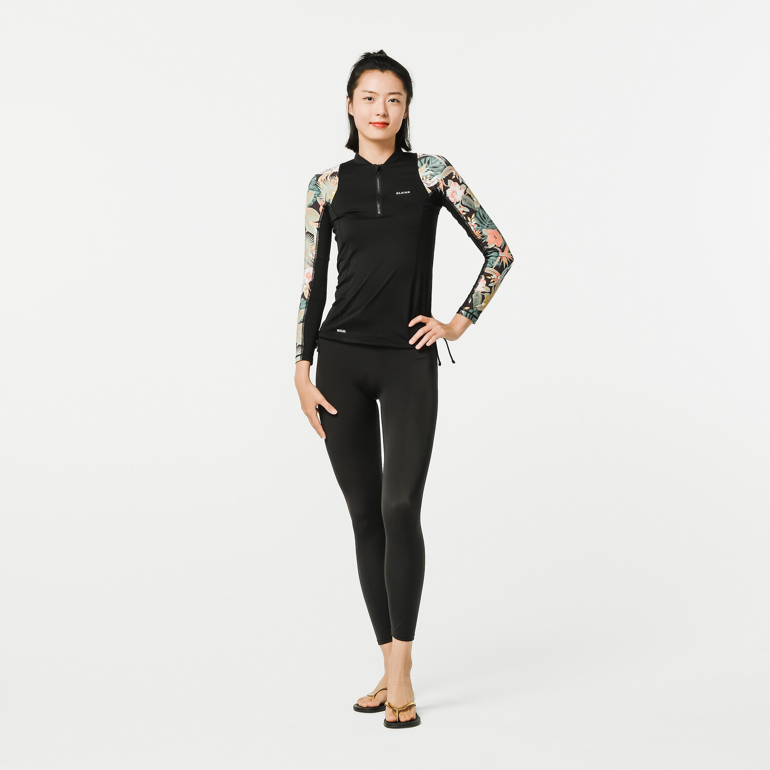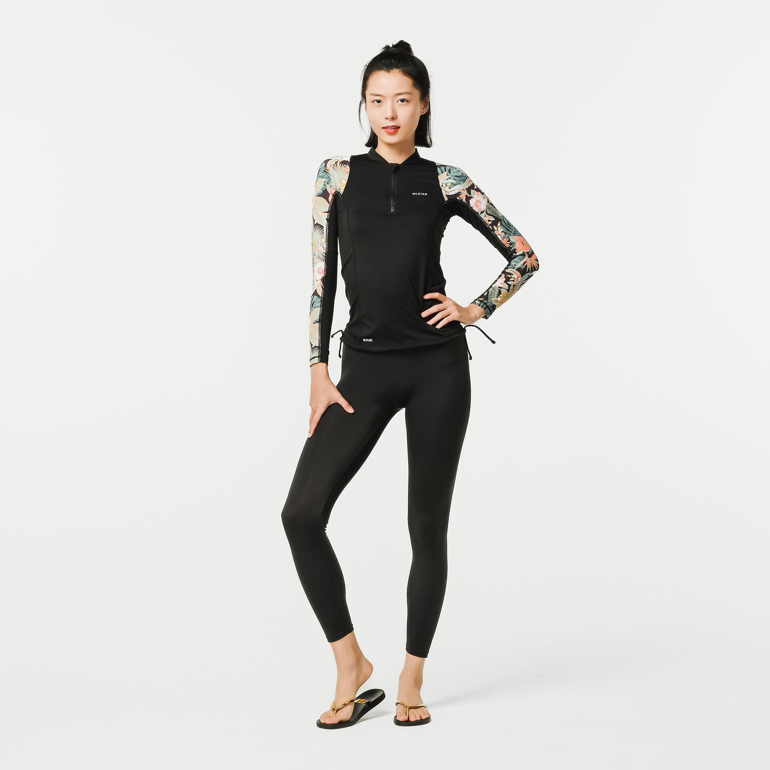 Ткань этого анти-УФ-продукта OLAIAN блокирует не менее 98 % УФ-излучения и 95 % УФ-излучения (UPF 50+). Это гарантирует эффективную защиту от солнца. Его можно использовать как в воде, так и вне воды, для водных или морских видов спорта. Плотность текстильных волокон фильтрует ультрафиолетовые лучи, обеспечивая длительную защиту даже после стирки. Внимание: эластан в волокнах может испортиться в хлорированной воде.