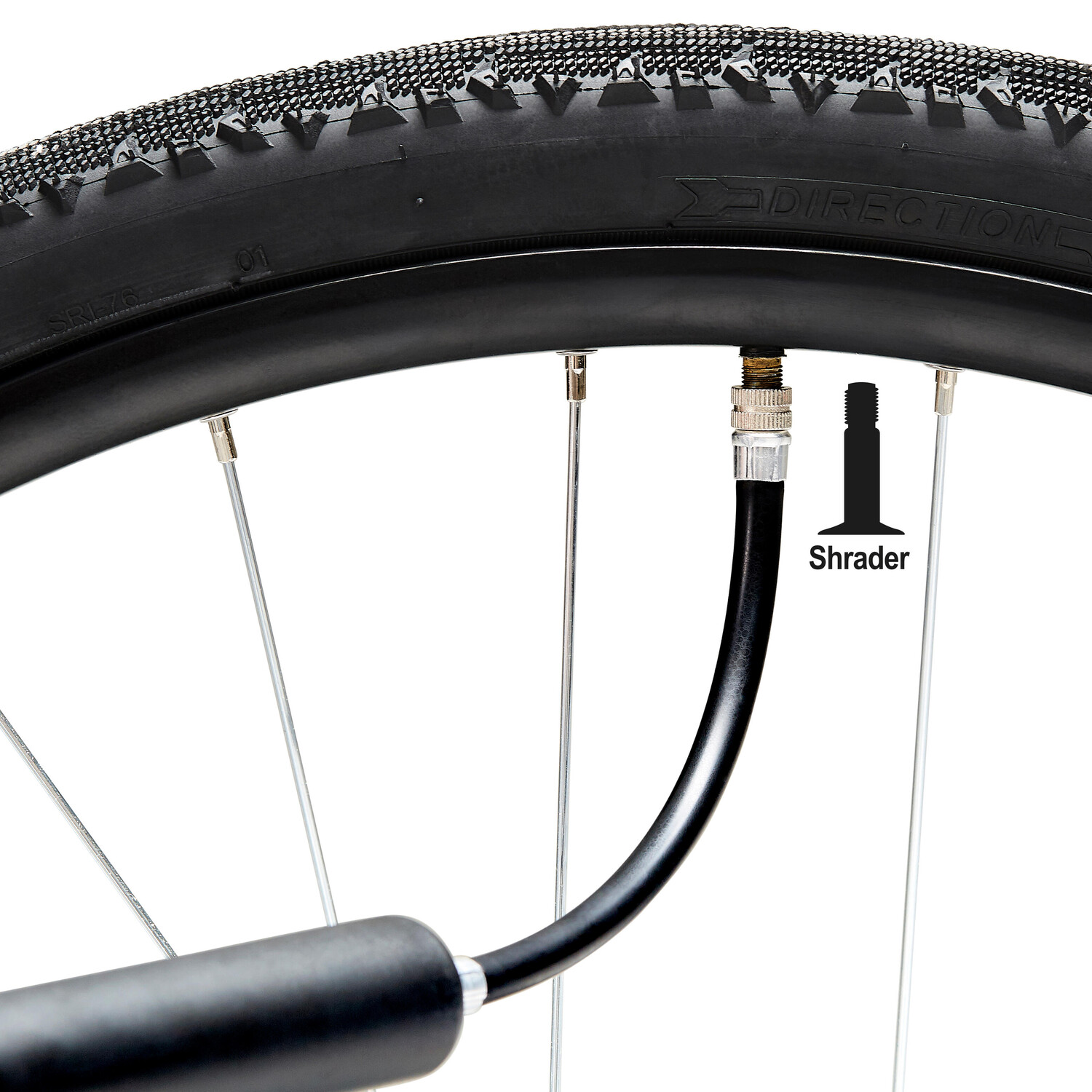 Этот шланг с разъемом для велосипеда позволяет прикрепить насос к труднодоступным клапанам. В комплект входит адаптер Presta-Schrader.