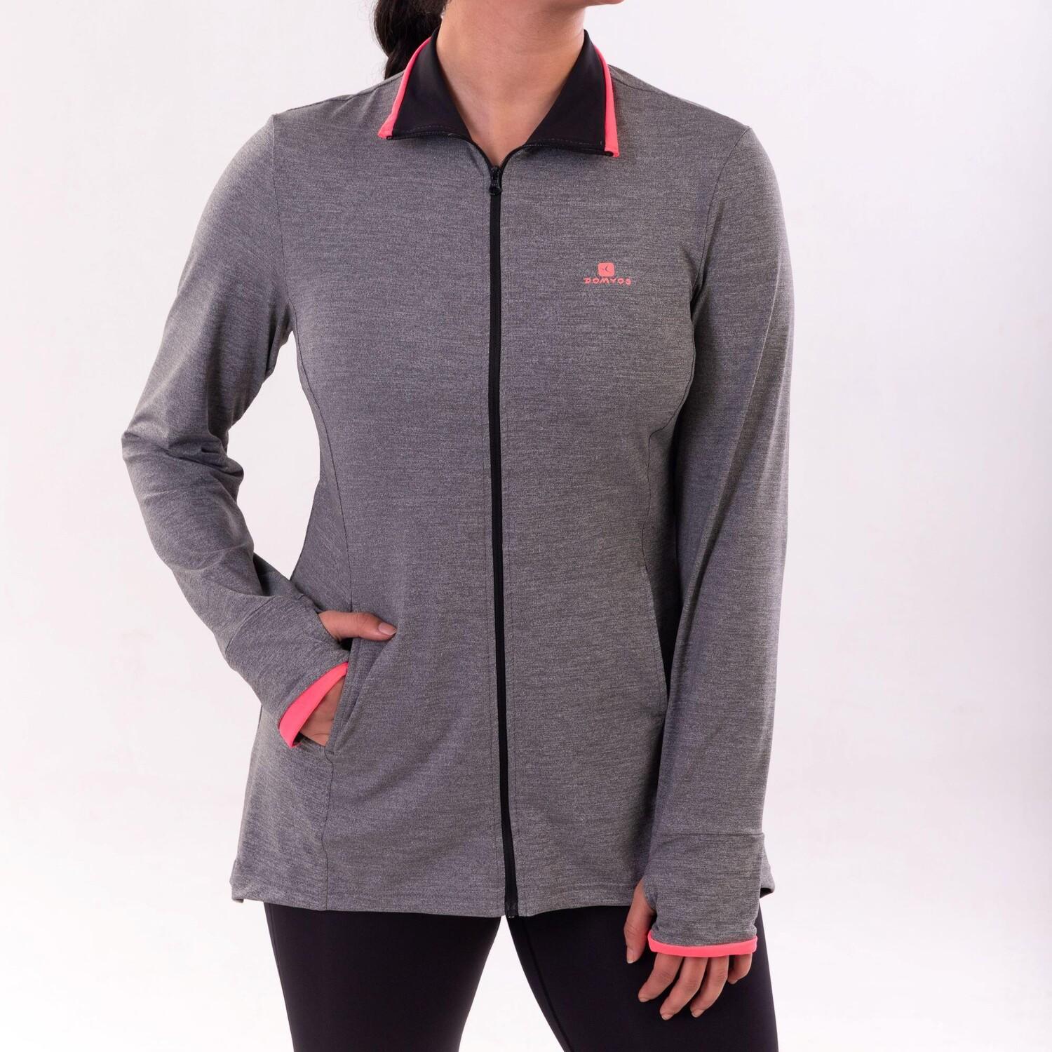 Эта куртка доступна в сером цвете. Дополните его товарами из нашей женской фитнес-коллекции, леггинсами и плавками!
