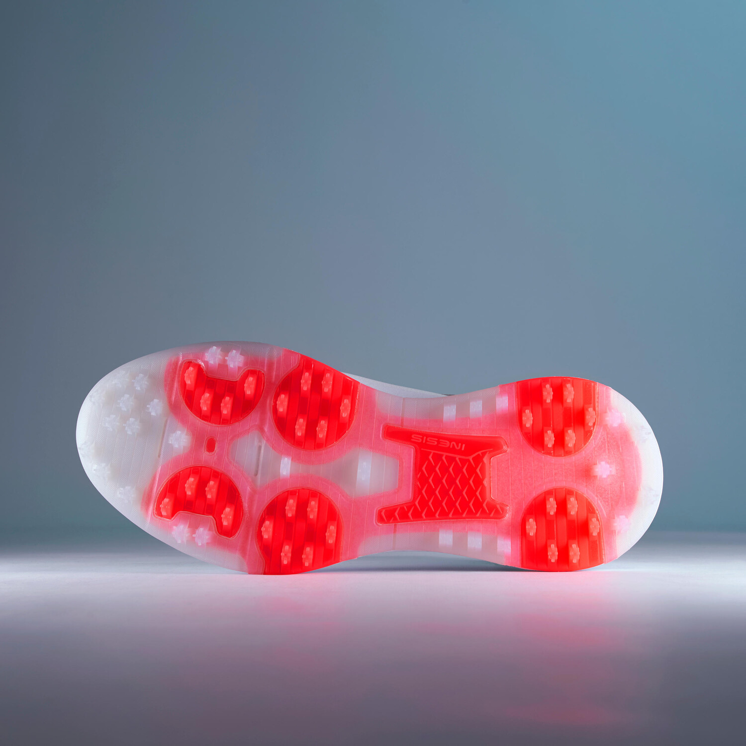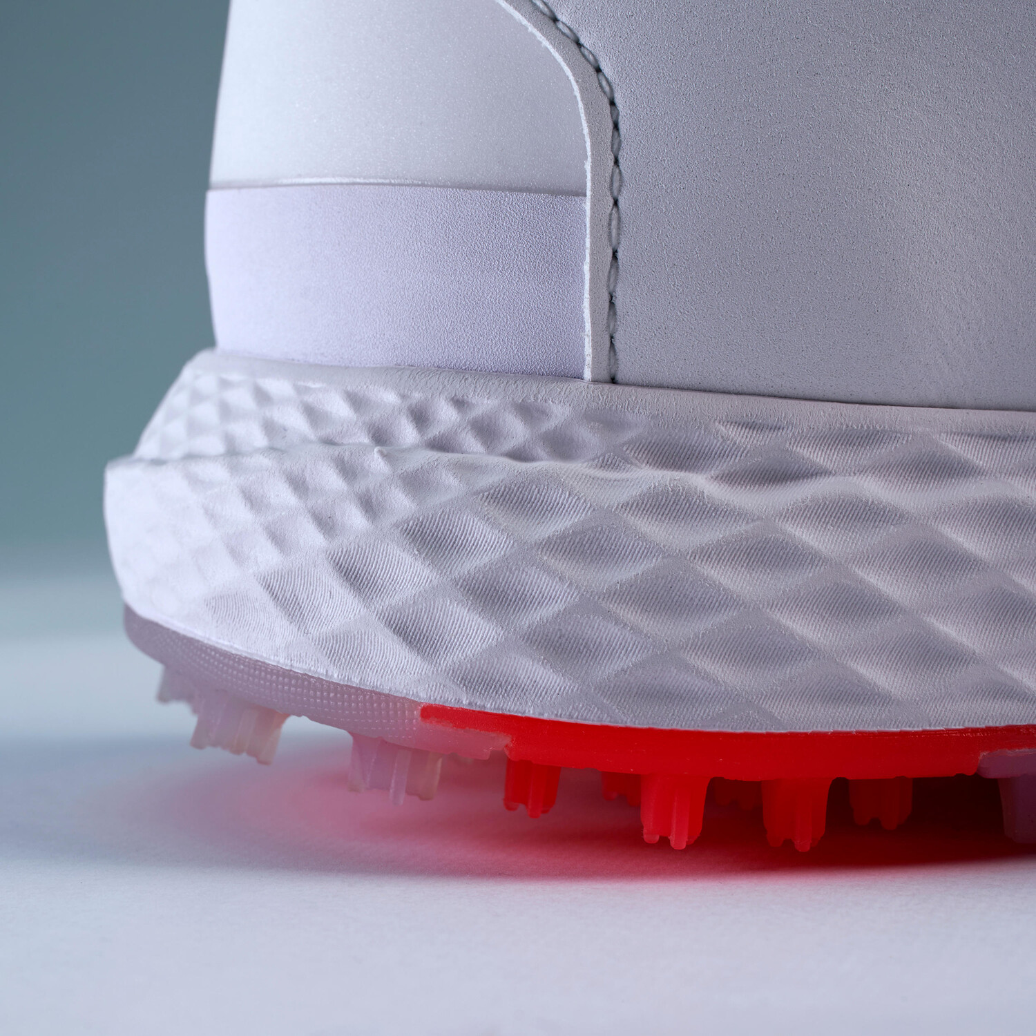Более жесткие шипы из ТПУ улучшают сцепление с травой во время замаха, а более гибкие резиновые шипы обеспечивают большую универсальность при ходьбе по фервею.