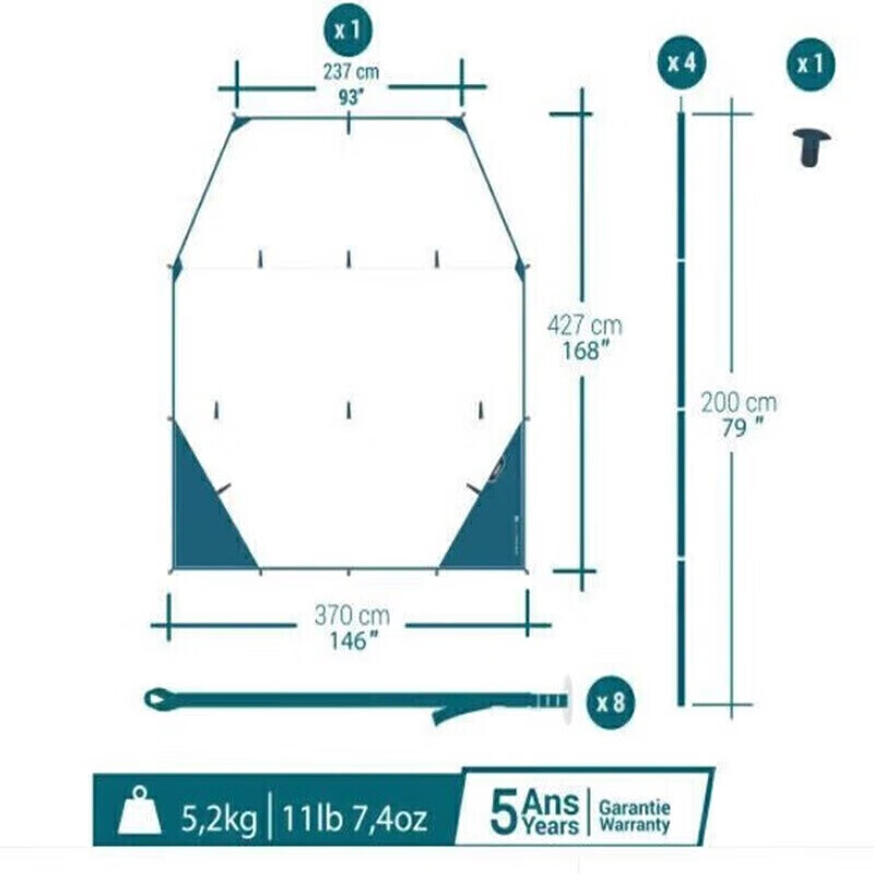 Магазин Decathlon, уличная штора, маркиза QUNC, белая штора цвета слоновой кости, большие размеры (подходит для 8-10 человек) 2963443