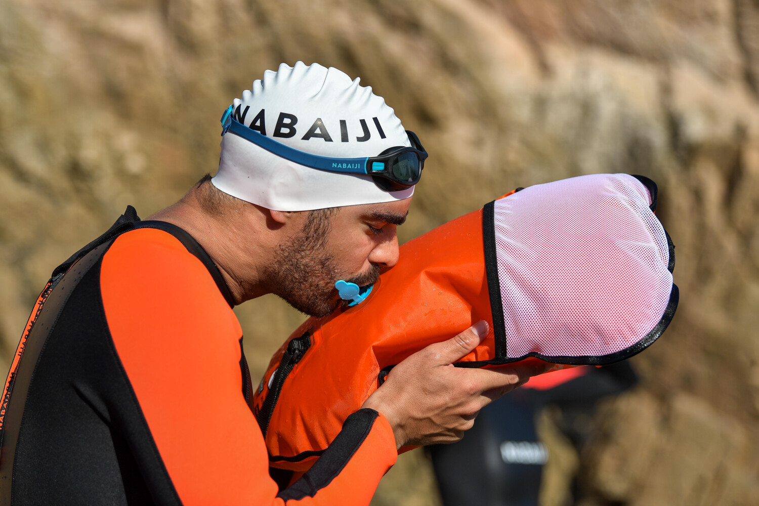 При купании в открытой воде настоятельно рекомендуется использовать надувной спасательный буй, чтобы лодки, спасательные службы и другие суда могли легко вас обнаружить. Буй также можно использовать для отдыха, когда пловец устал или страдает от судорог. Кроме того, к бую прикреплен свисток, чтобы при необходимости вы могли сообщить о своем присутствии звуковым сигналом.