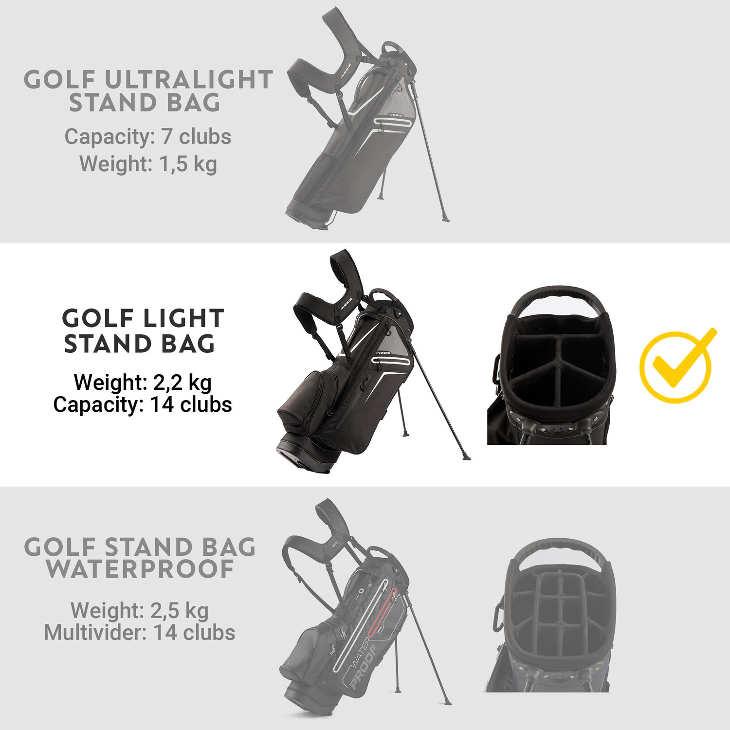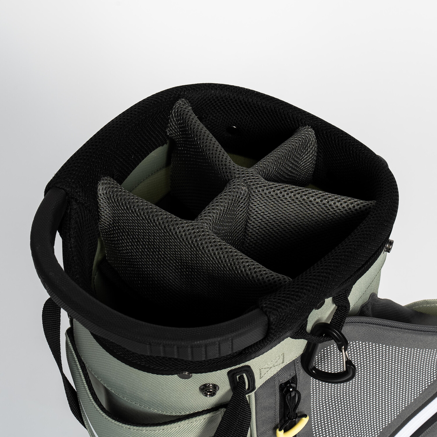 ОБРАТИТЕ ВНИМАНИЕ: важно отрегулировать двойной ремень и особенно край сумки, чтобы клюшки не опрокидывались вперед и не падали.