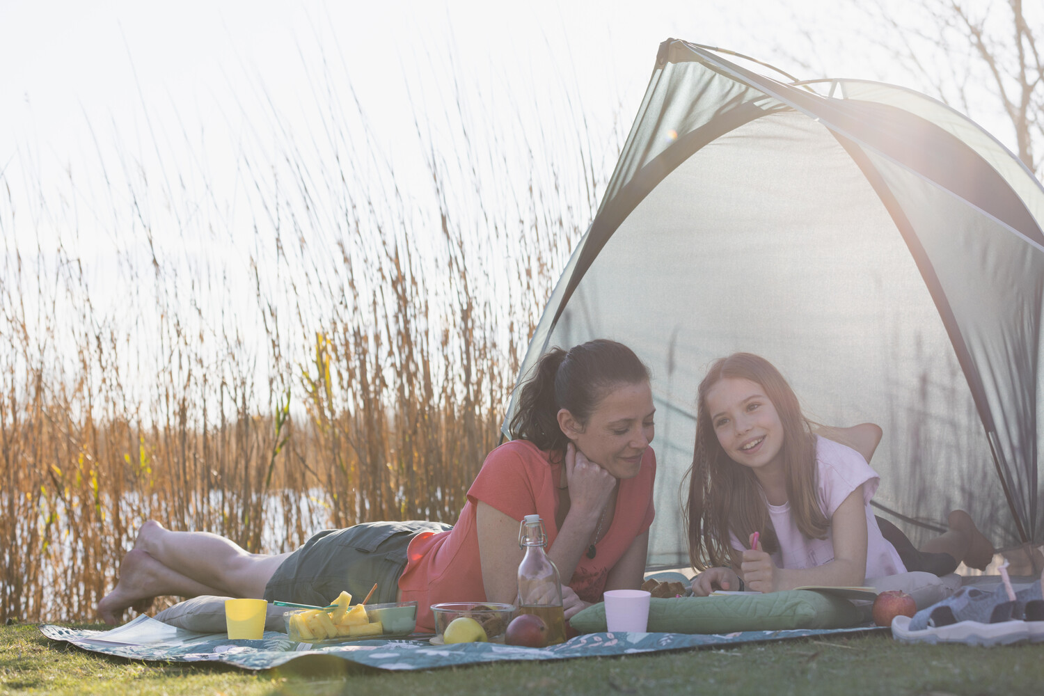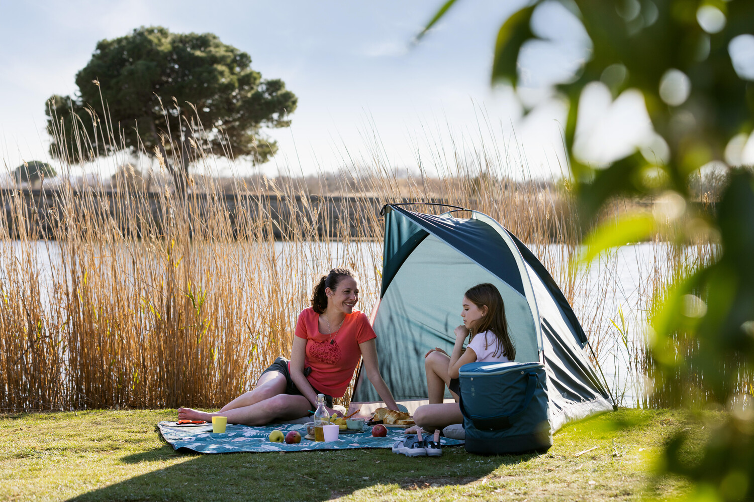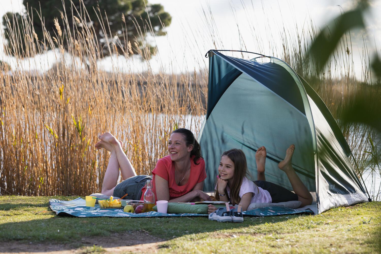 Внимание: поскольку некоторые УФ-лучи проходят прямо или косвенно через переднюю часть палатки, мы советуем вам защищать кожу.