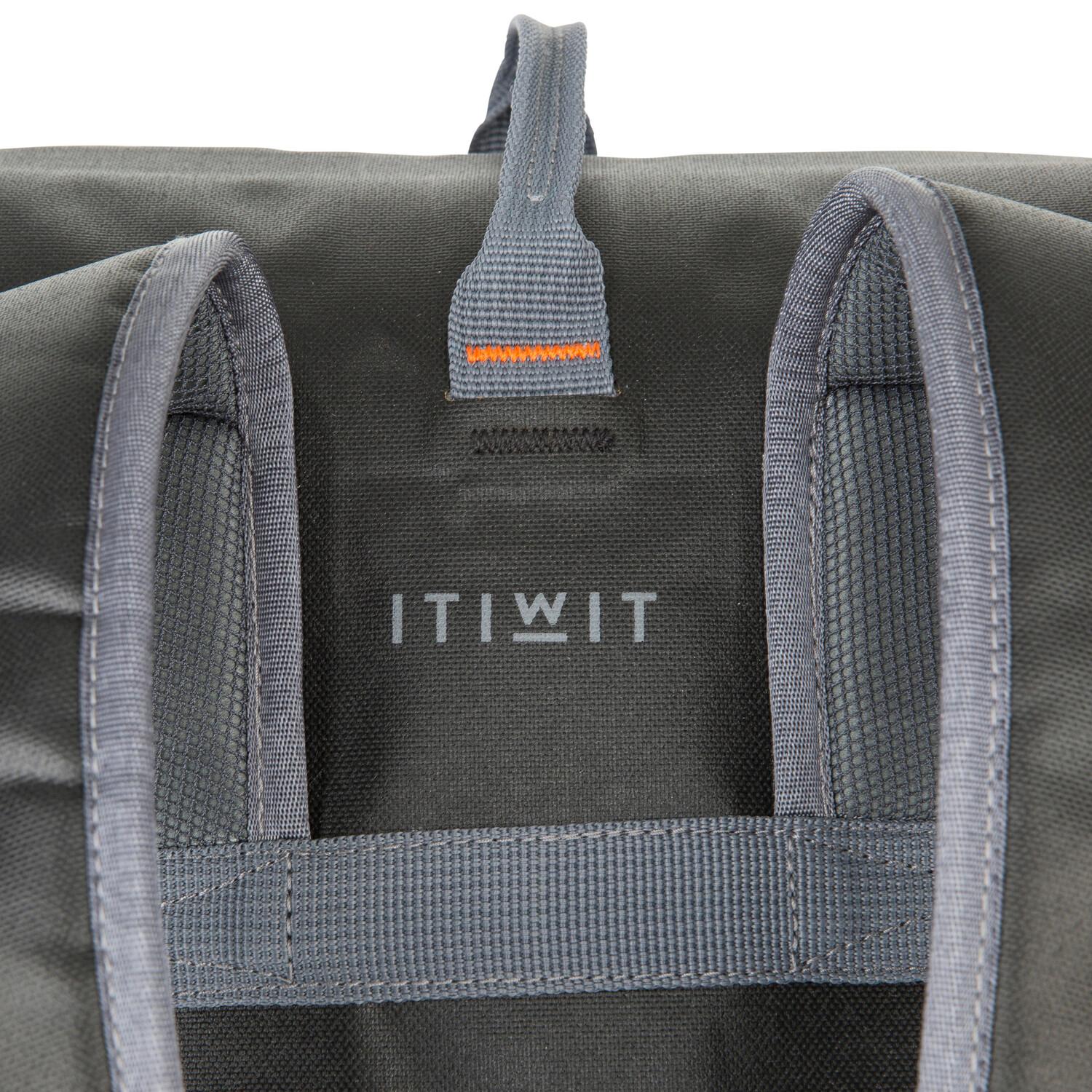 / Аккуратно переверните верхнюю часть сумки 5 раз, плотно сложив ее по ширине ремня.