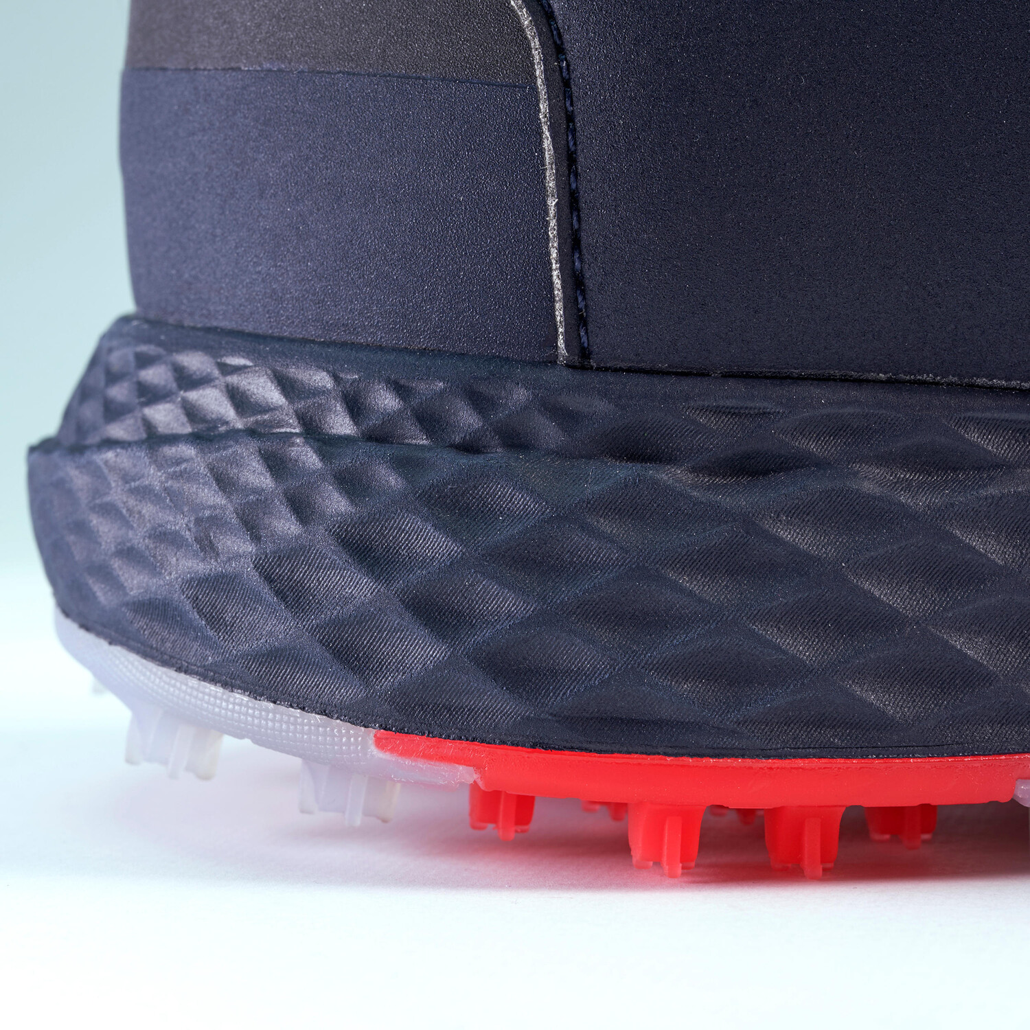 Более жесткие шипы из ТПУ улучшают сцепление с травой во время замаха, а более гибкие резиновые шипы обеспечивают большую универсальность при ходьбе по фервею.