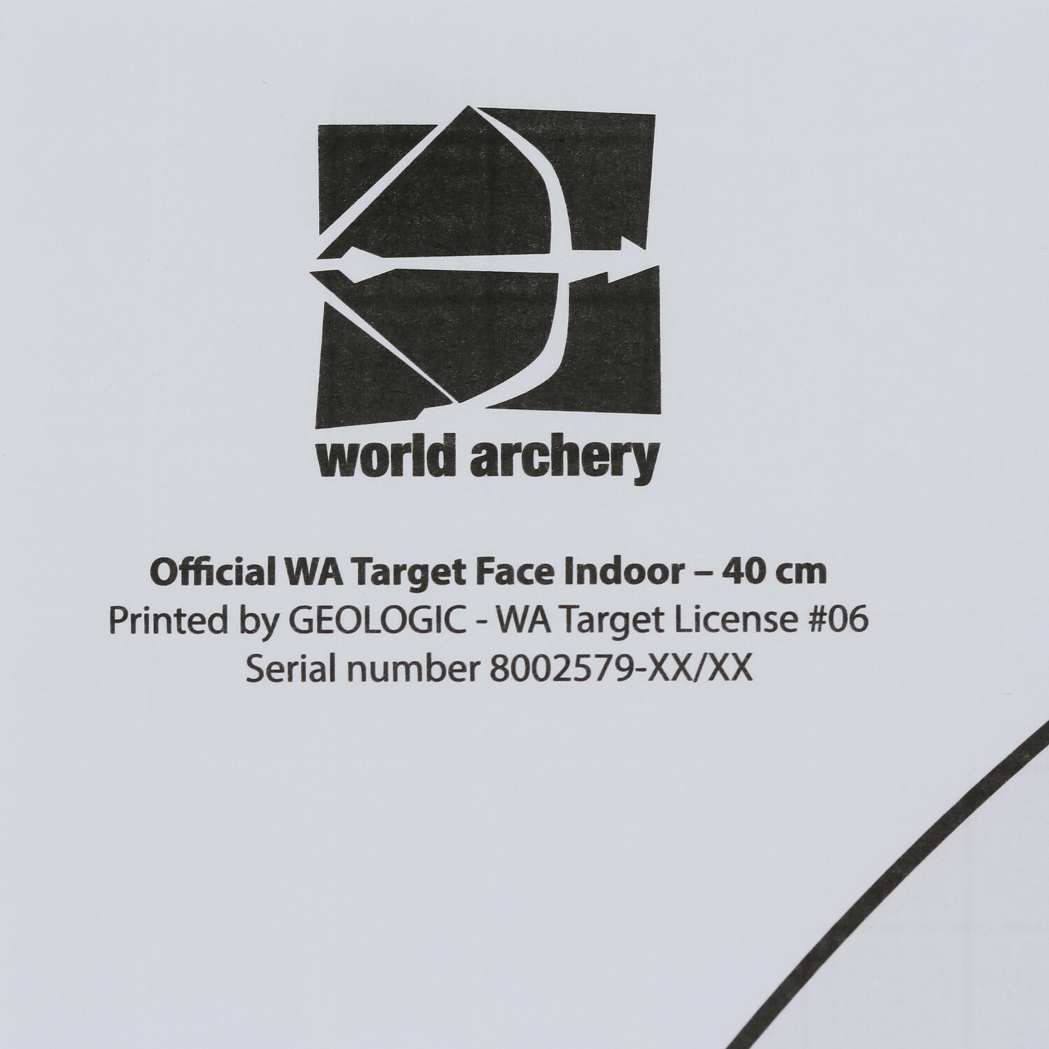 - лицевая поверхность мишени, одобренная всемирной стрельбой из лука, изготовлена из армированной бумаги для предотвращения разрывов.