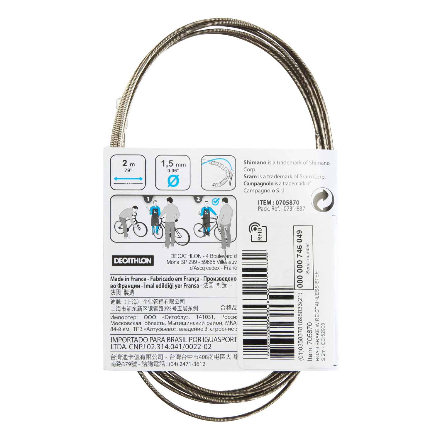 Универсальный дорожный тормозной трос Decathlon