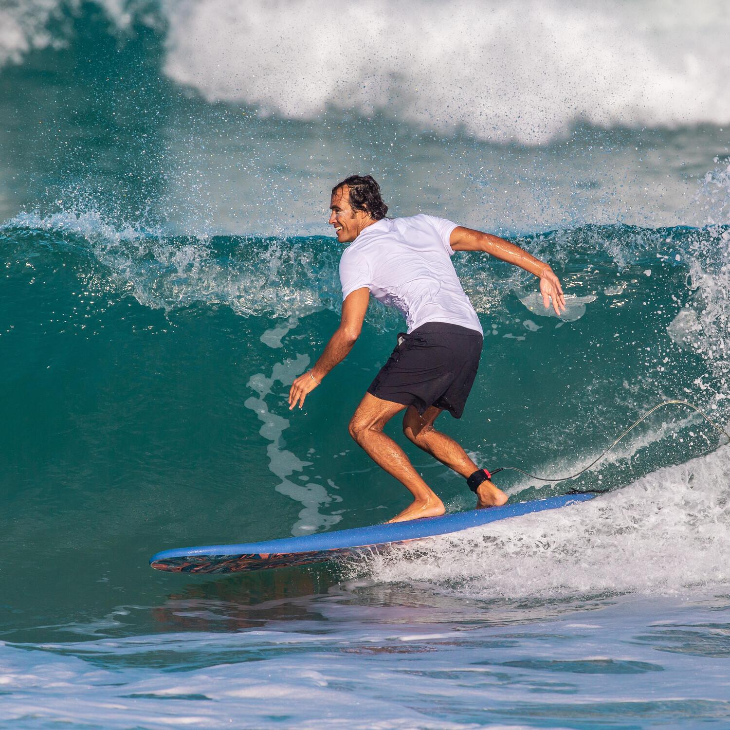 Шорты для доски 500 оснащены плоским поясом, который поможет держаться на волне при нырянии под волну и при падении. пояс имеет кулиску «аркан». он охватывает всю талию, активно помогая удерживать изделие на месте. Кроме того, плоский пояс обеспечит больший комфорт при гребле на доске для серфинга.