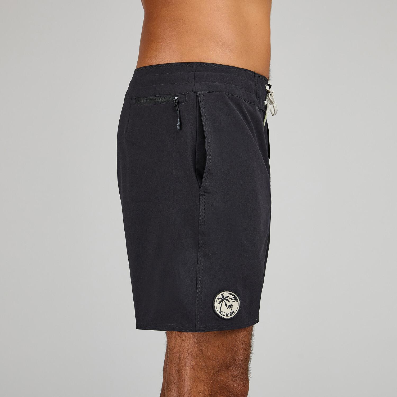 Бордшорты 500 оснащены боковым карманом на молнии (на правом бедре).