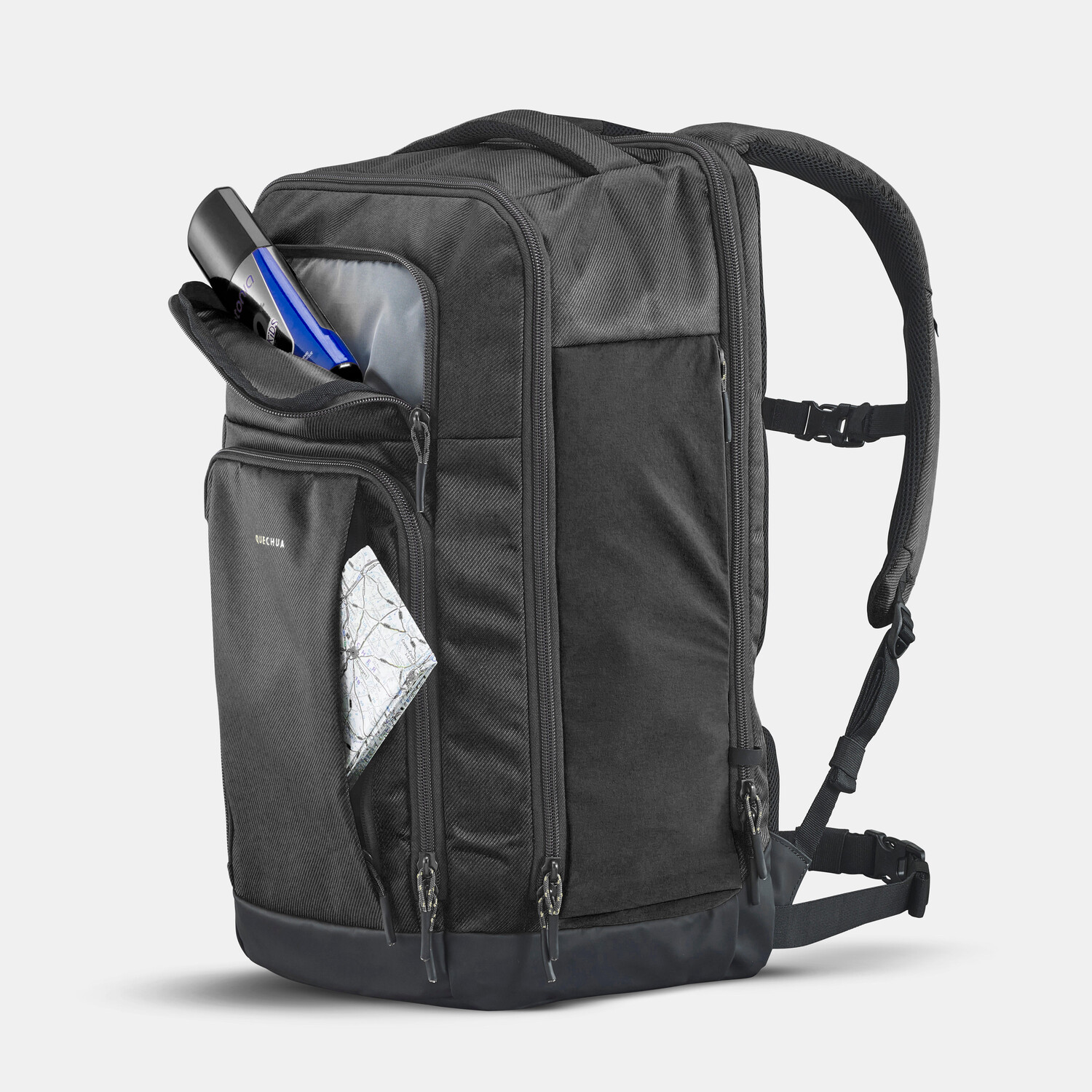 - 3 отделения | 15 карманов: 7 на молнии, 2 держателя для бутылок (1 л), 1 карман для ноутбука 17 дюймов.