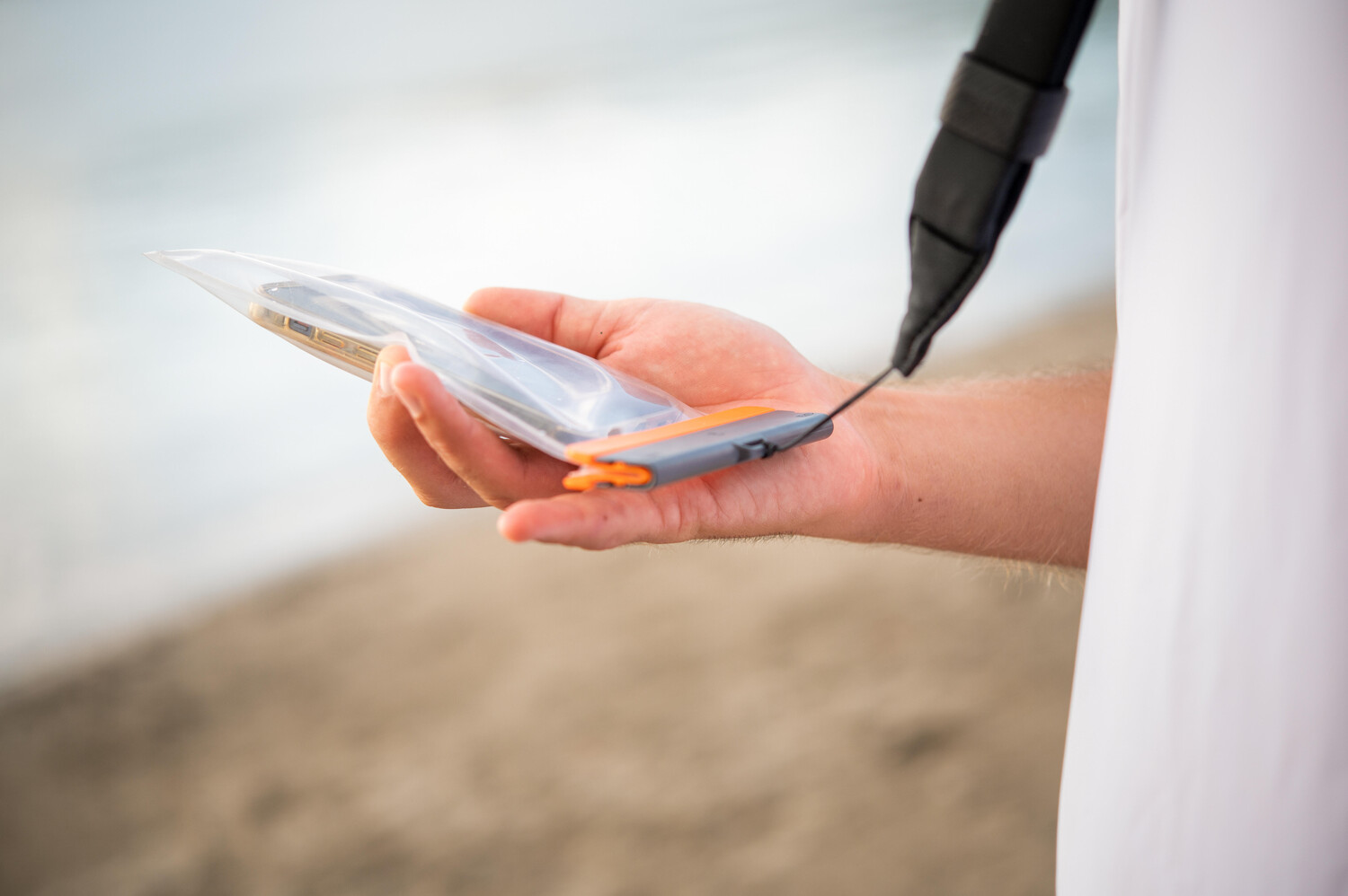 При использовании на высокой скорости (катание на гидроцикле, кайтсерфинге, катании на водных лыжах...) держите сумку подальше от ветра и кладите ее под гидрокостюм или что-то подобное.