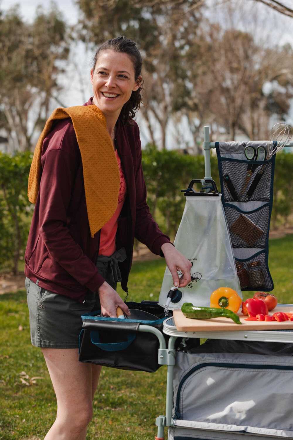 Канистру можно поставить или повесить. Мы добавили шнур, который можно прикрепить к отверстиям специальной ручки.
