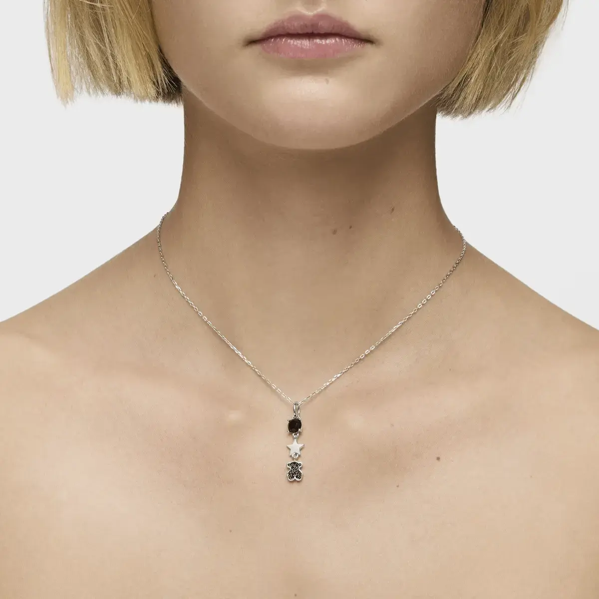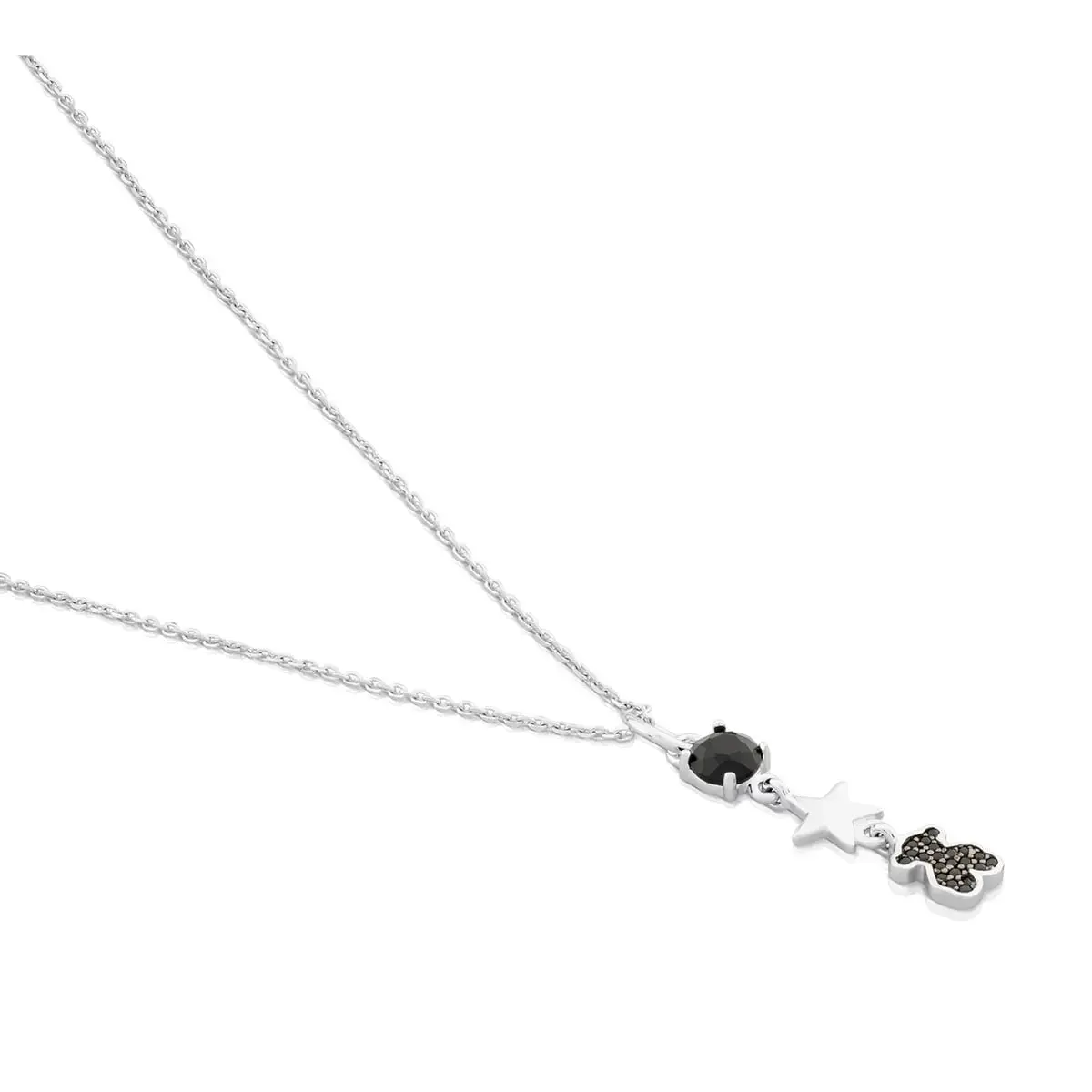 Выбирайте ожерелья, которые подчеркнут шикарную сторону любого образа. Попробуйте это с базовым топом и джинсами для неотразимого гламурного штриха. Ожерелье TOUS Join из стерлингового серебра с ограненным ониксом, звездой и медведем из стерлингового серебра со шпинелью.