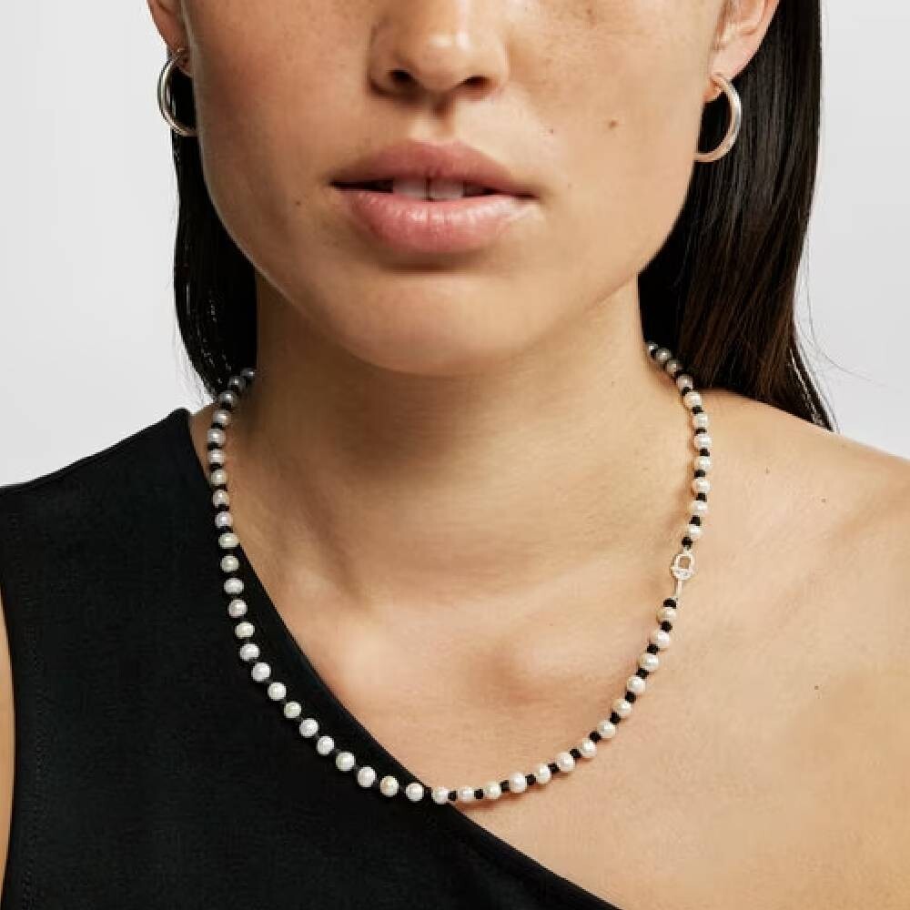 Ожерелье TOUS MANIFESTO из черного нейлона с культивированным жемчугом.
