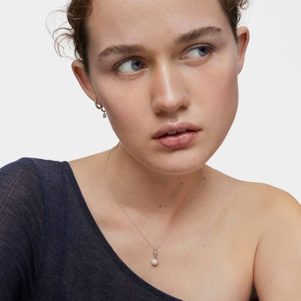 Короткое ожерелье TOUS Grain из 18-каратного белого золота с бриллиантами 0,019 карата, мотивом в виде сердца и культивированным жемчугом Freshwasher.