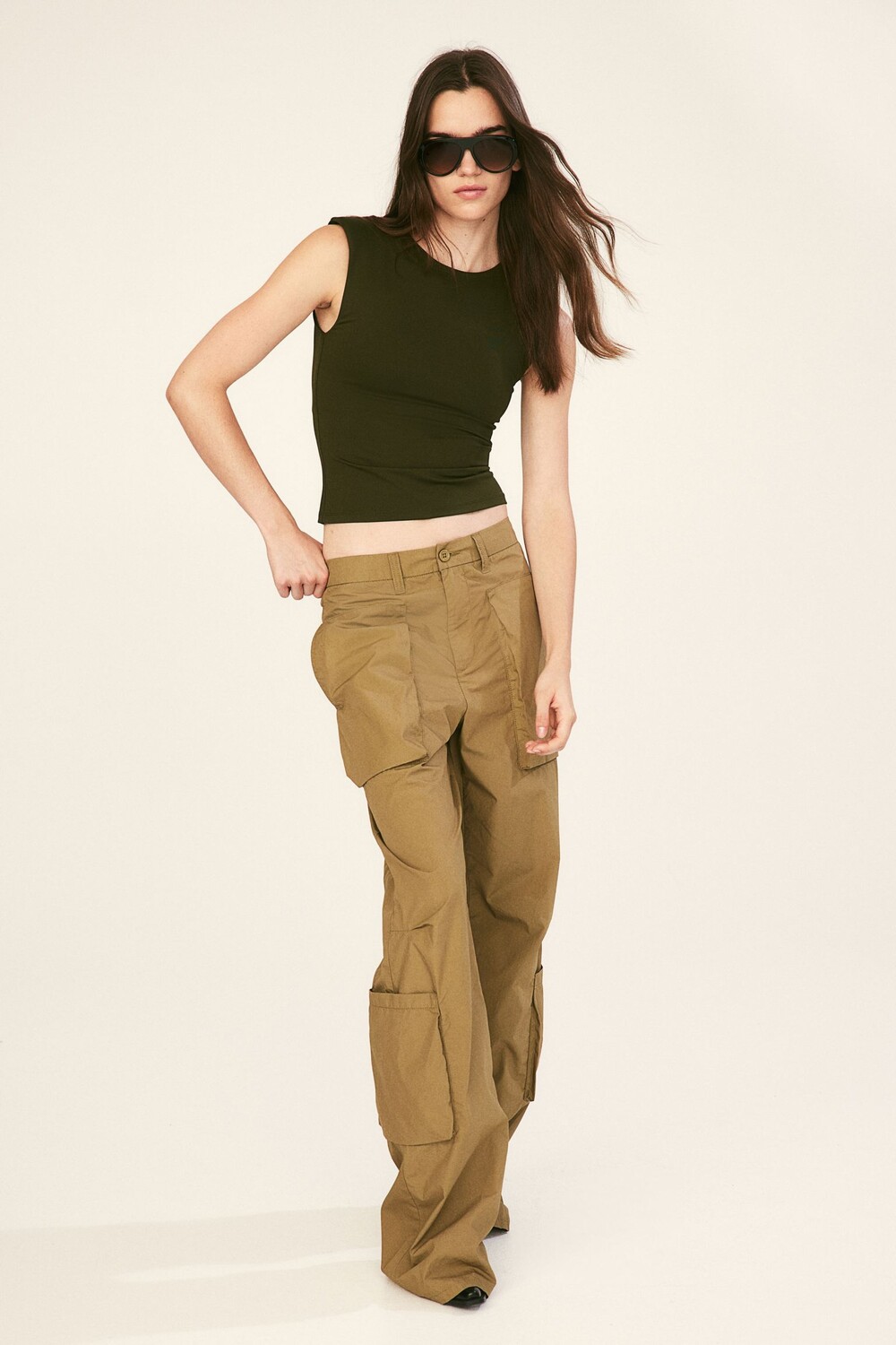 Облегающий топ без рукавов из эластичного трикотажа. Круглый вырез, объемные плечи.