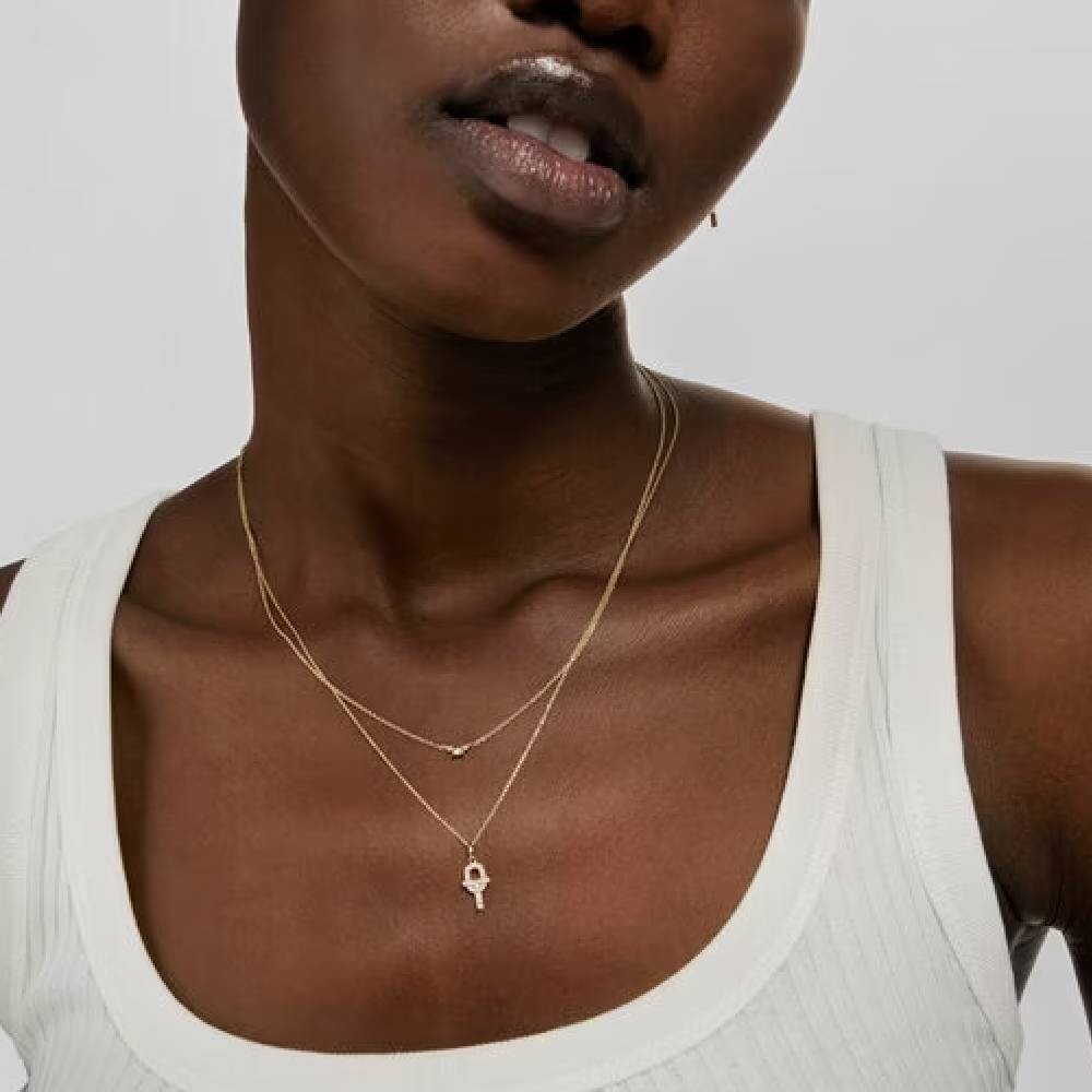 Ожерелье TOUS MANIFESTO из 18-каратного золота с бриллиантами круглой огранки 0,09 карата на подвеске.