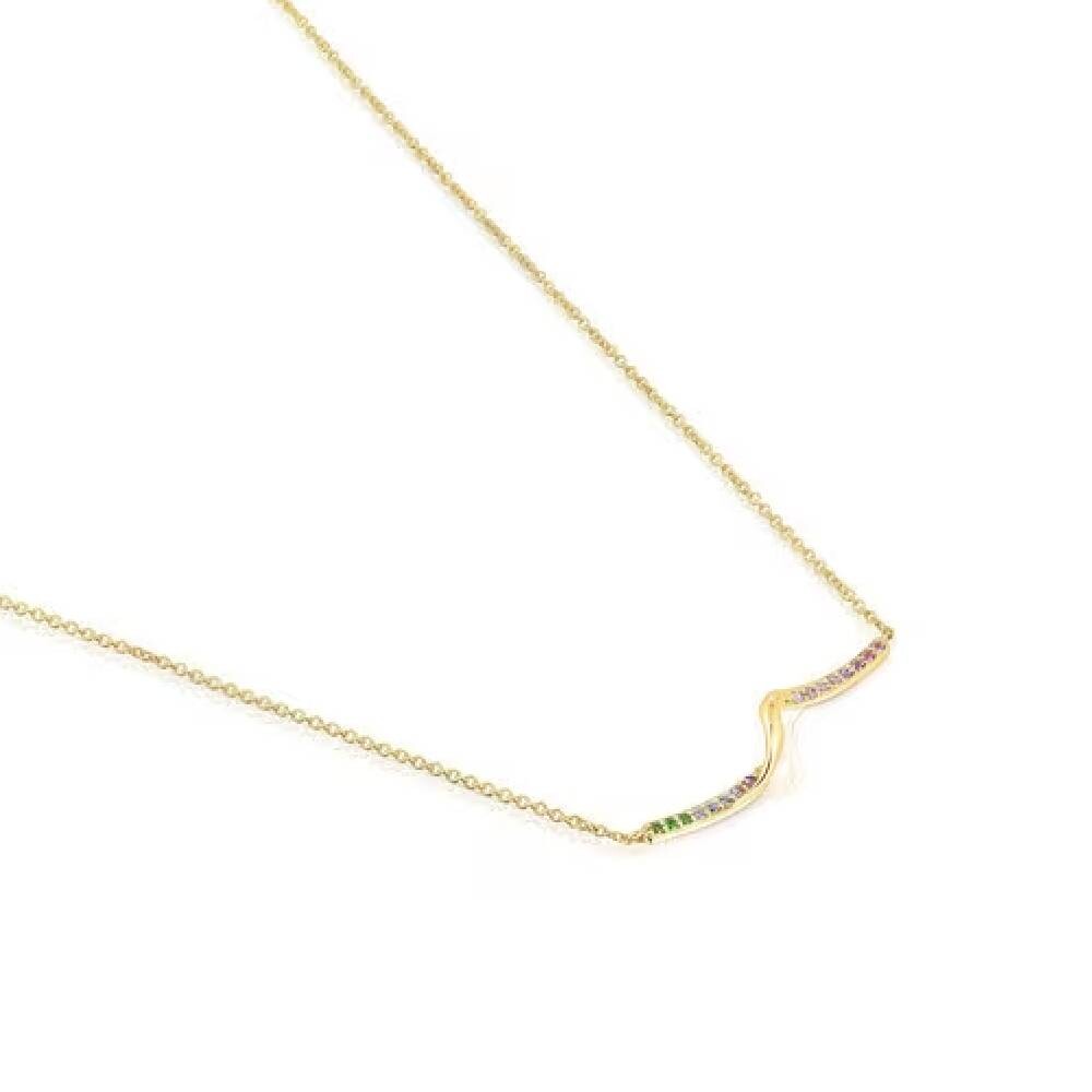 Колье TOUS St. Tropez из 18-каратного золота со спиралью из драгоценных камней. Круглые граненые камни: хромдиопсид, синий сапфир, аметист и розовый сапфир.