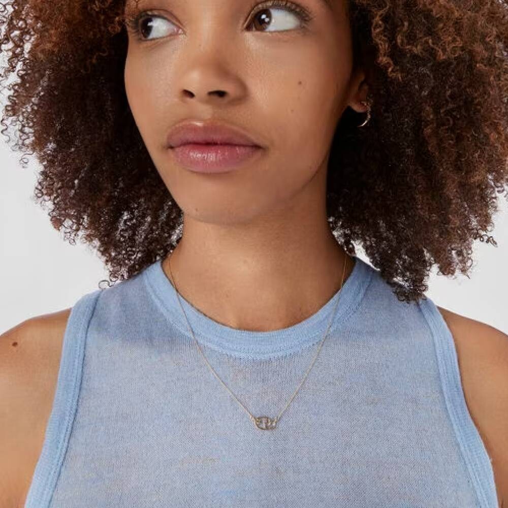 Ожерелье TOUS Tsuri из золота с драгоценными камнями, расположенными вокруг силуэта овала. Драгоценные камни: аметист и хромдиопсид.