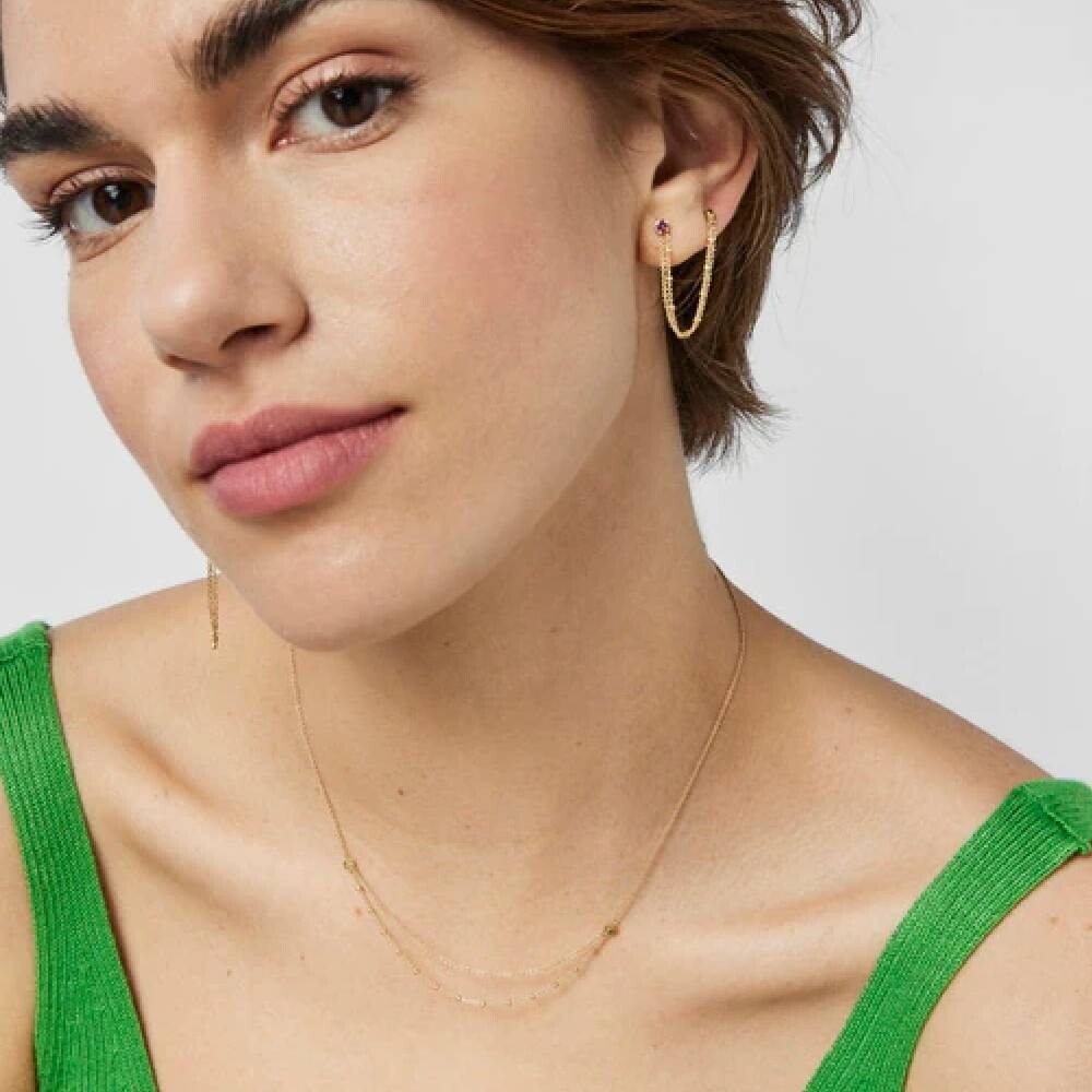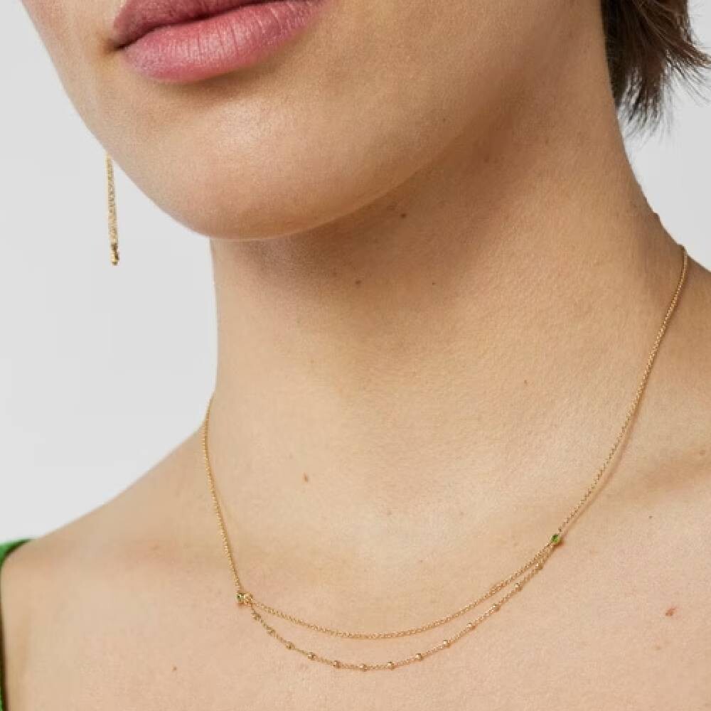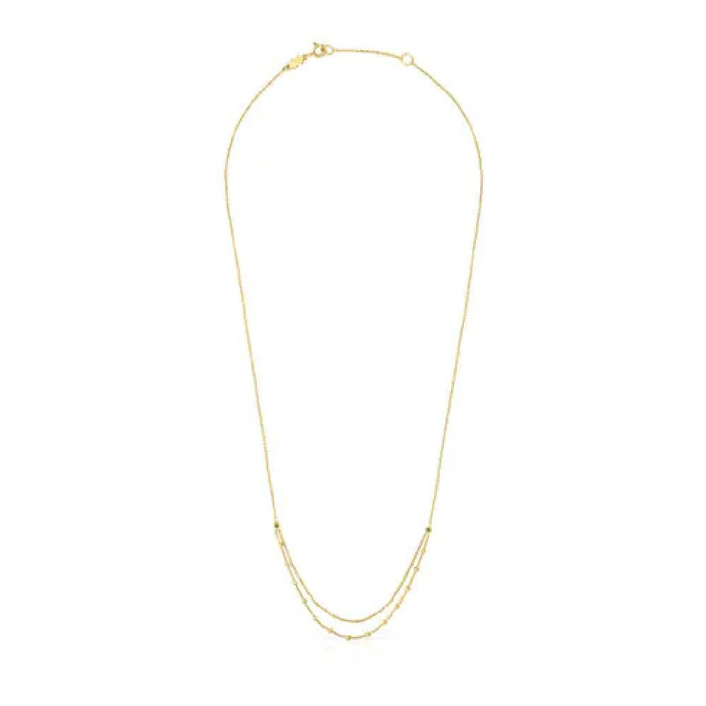 Каскадное ожерелье TOUS Cool Joy из 18-каратного золота, состоящее из простой двойной цепочки с вкраплениями шариков, соединенных между собой 1,5-миллиметровыми камнями хромдиопсида.