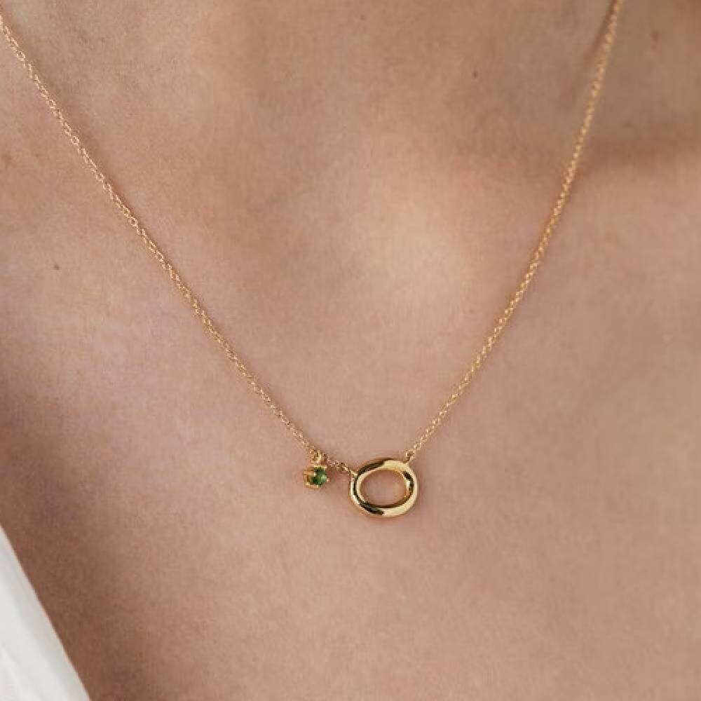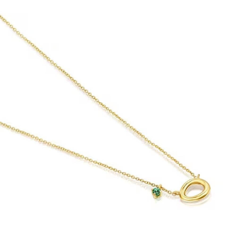 Ожерелье TOUS HAV из 18-каратного золота с кольцом и круглыми ограненными цаворитами.