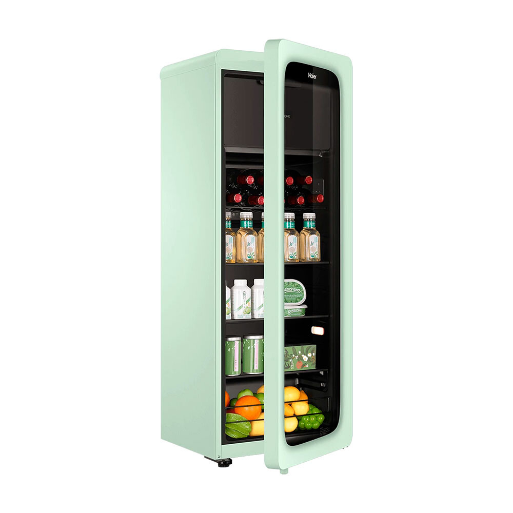 Haier 132L LC-132LH9EC1 - компактный холодильник, занимающий площадь всего 0,22 кв.м, станет эстетичным дополнением небольших кухонь и комнат. Выполненный в привлекательном минималистичном дизайне, устройство имеет скрытую конструкцию дверных петель, мягкий цвет и скругленные углы, что позволит с лёгкостью интегрировать его в различные стили интерьера.