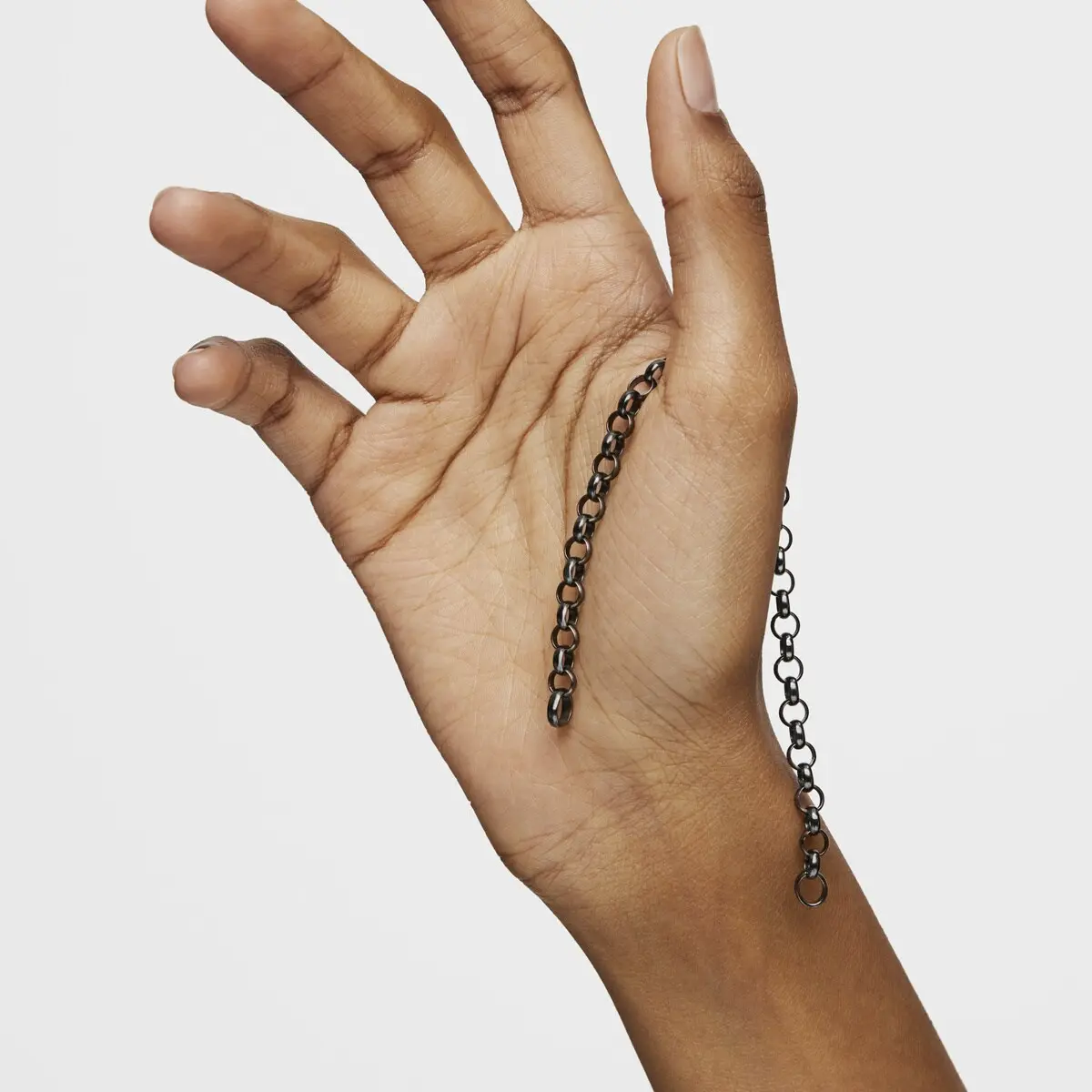 Изделие изготовлено из темного серебра: темное серебро - стерлинговое серебро, покрытое слоем рутения - минерала, придающего прочность и блеск