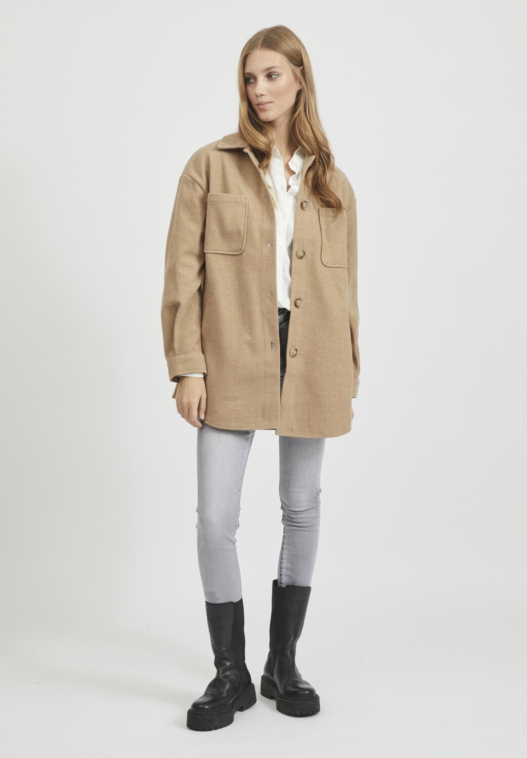 Пальто короткое Vila с карманами на груди, светло-коричневый