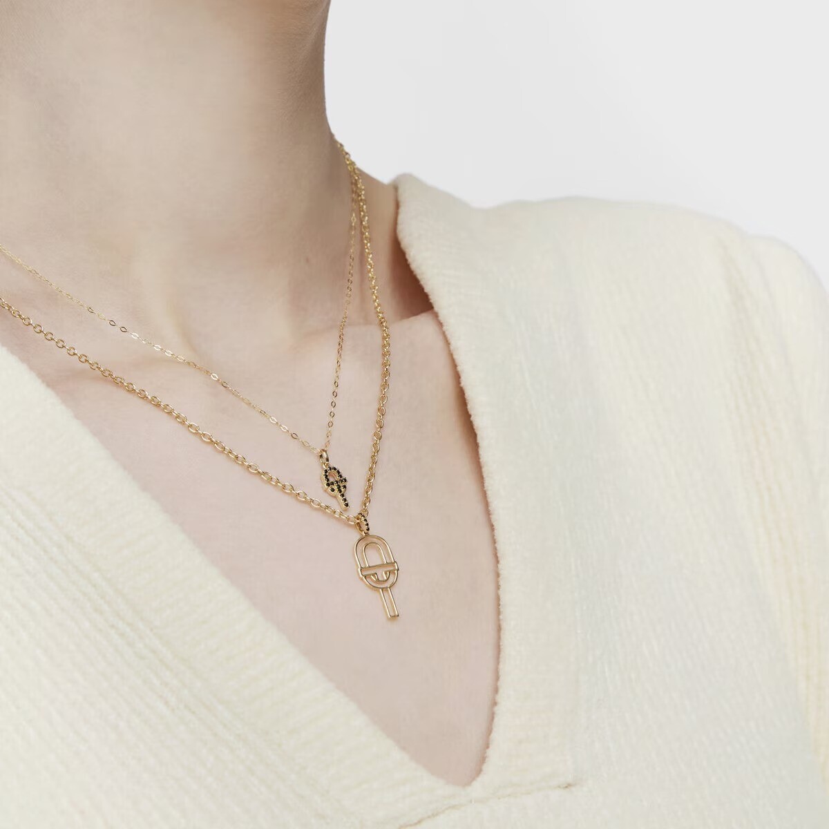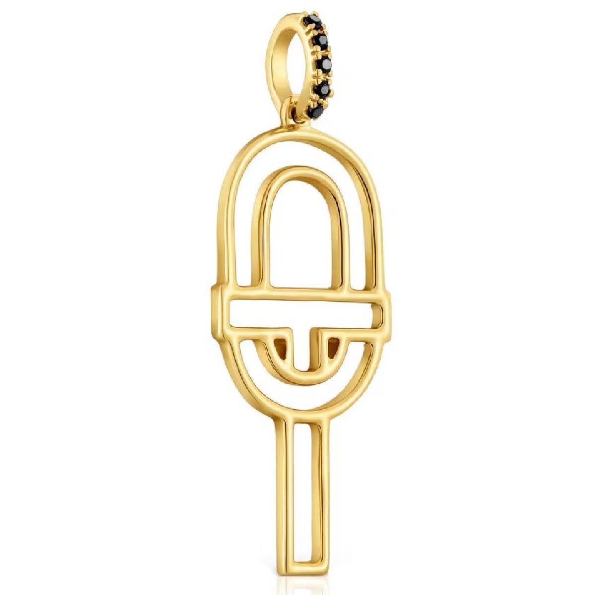 Подвеска в виде силуэта в виде манифеста среднего размера из 18-каратного золота со шпинелями.