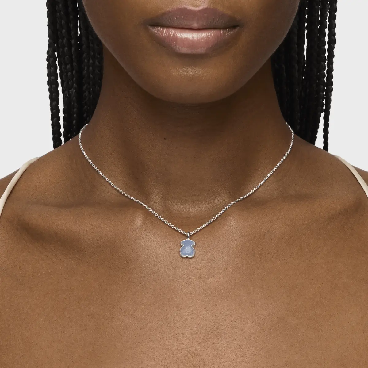 Ожерелье, которое излучает истинную элегантность. Серебро и кварц с дюмортьеритом, элегантное и вызывающее сочетание. Нотка ночной тайны в вашем дневном образе. Ожерелье TOUS New Color из стерлингового серебра с кварцем и дюмортьеритом.