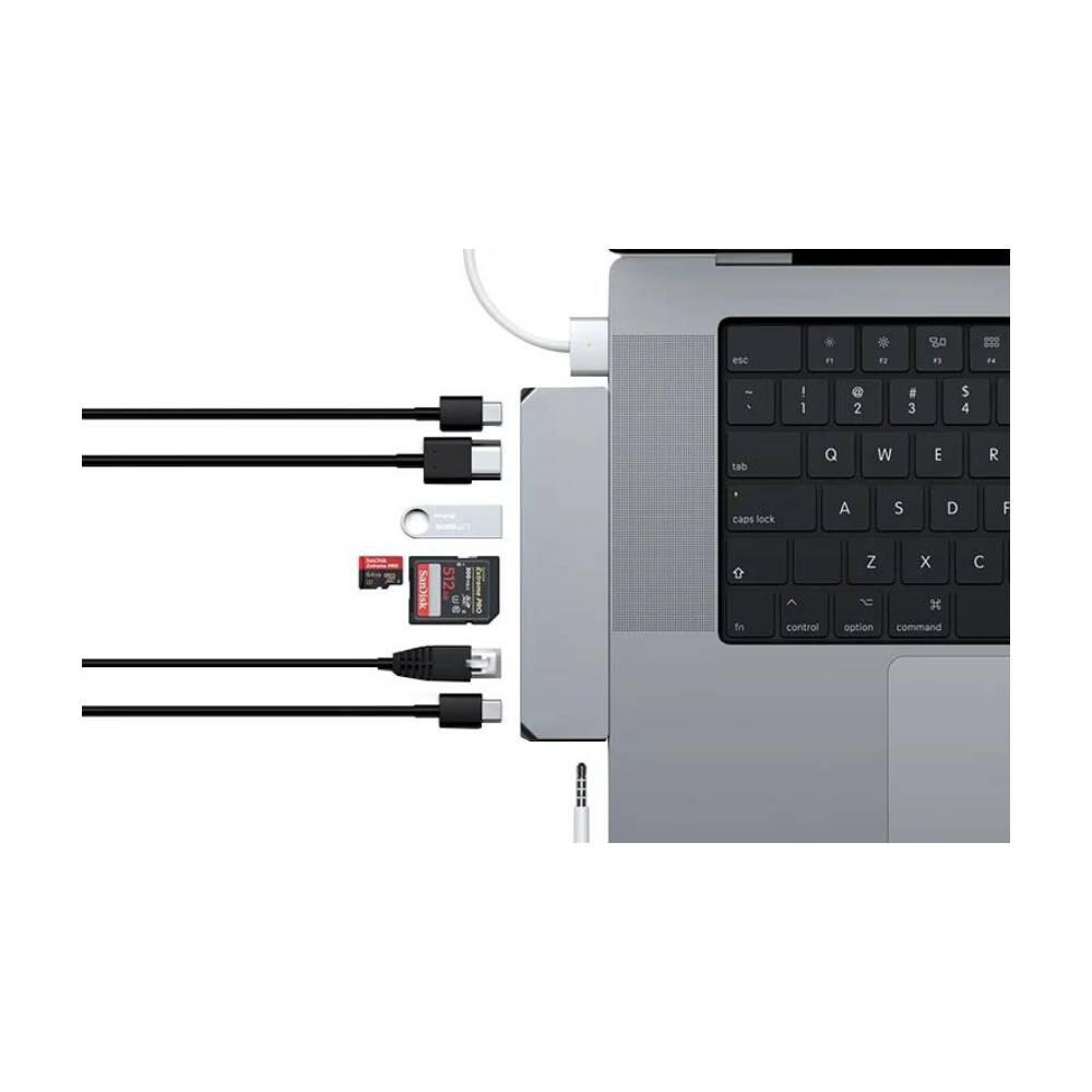 USB-Хаб создан и отлично подходит для MacBook Pro и Air, оснащенных двумя USB-C портами. Именно к ним он надежно крепится, заменяя два хоть и производительных, но ограниченных в своих возможностях разъема. Теперь вам становятся доступны все нужные варианты: USB-C, HDMI (до 60 Гц), гигабитный Ethernet, USB-C для передачи данных, USB-A для передачи данных и аудиоразъем. Так что вы можете без проблем и в любой момент организовать комфортное рабочее место. Тем более что сам хаб - компактный, легкий и создан, чтобы идеально сочетаться с вашим ноутбуком.