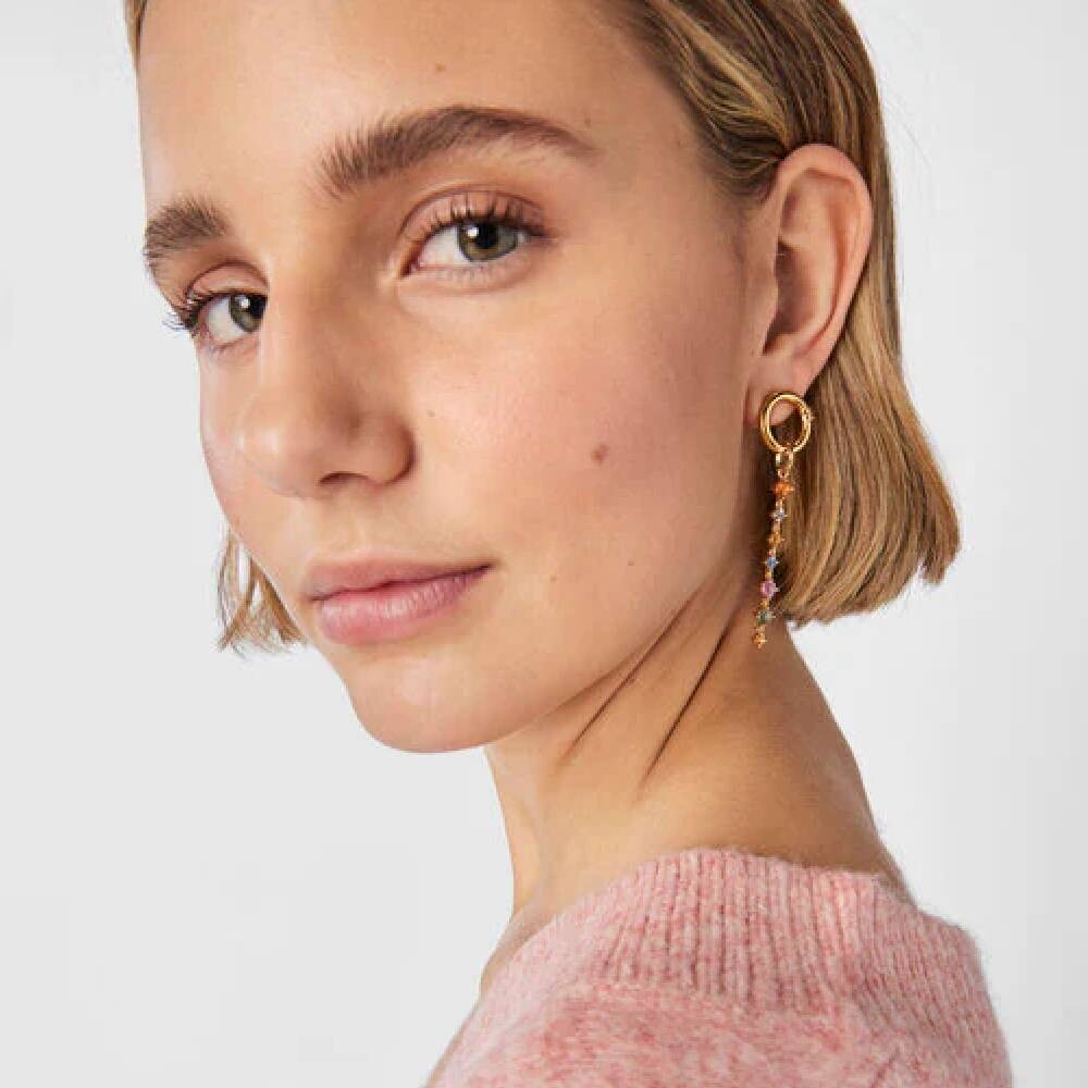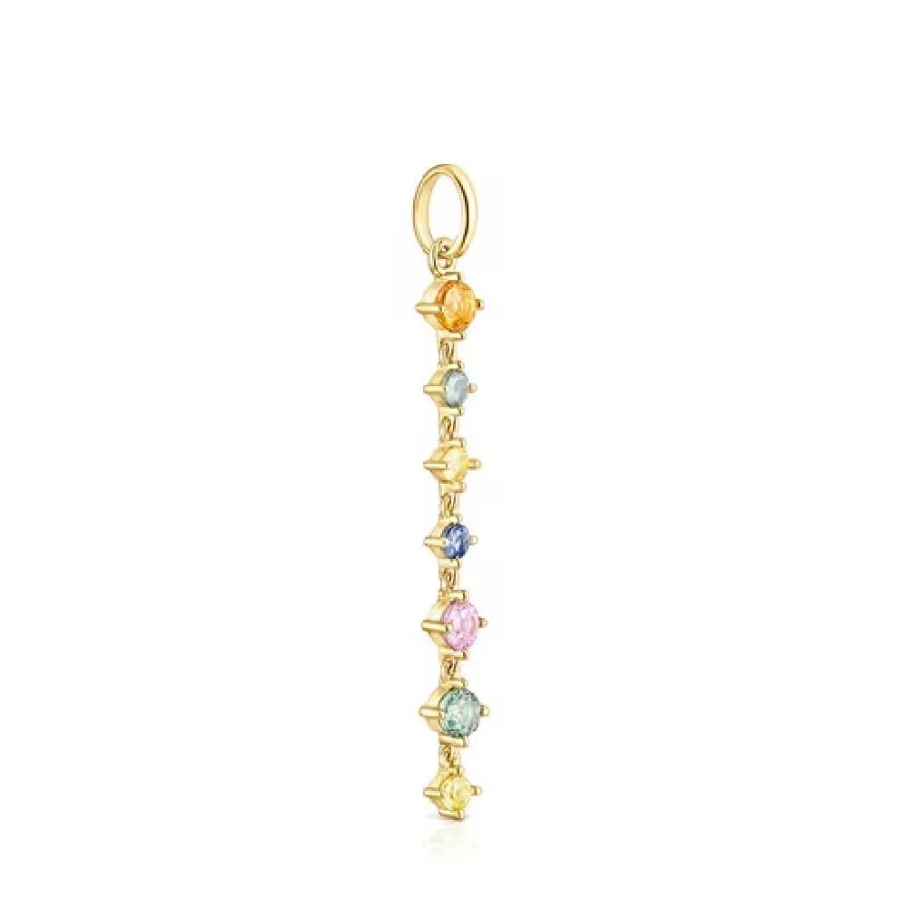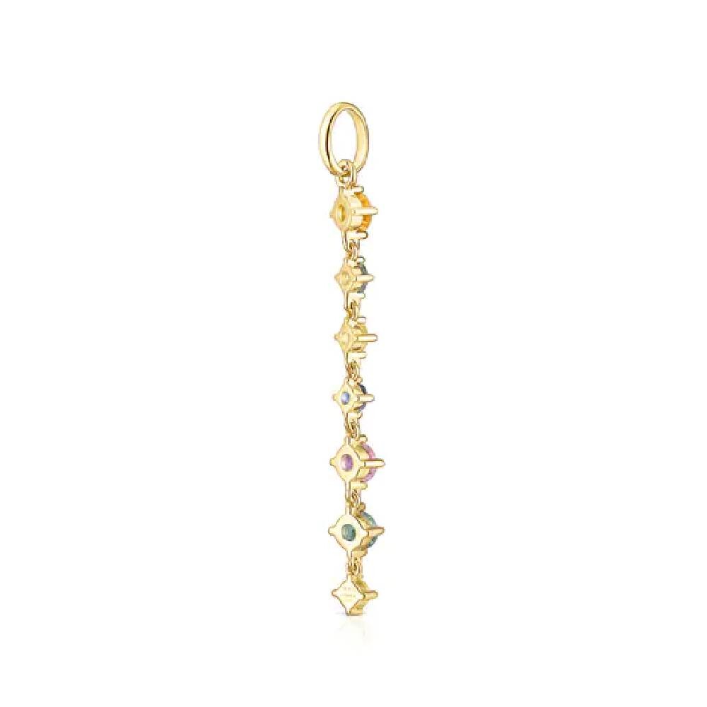 Подвеска TOUS Glaring из серебряного вермеля с семью сапфирами размером 3-4 мм (оранжевый, зеленый, желтый, синий и розовый). Серебро 925 пробы, покрытое 18-каратным золотом толщиной от 3 до 5 микрон, без других металлов между ними.