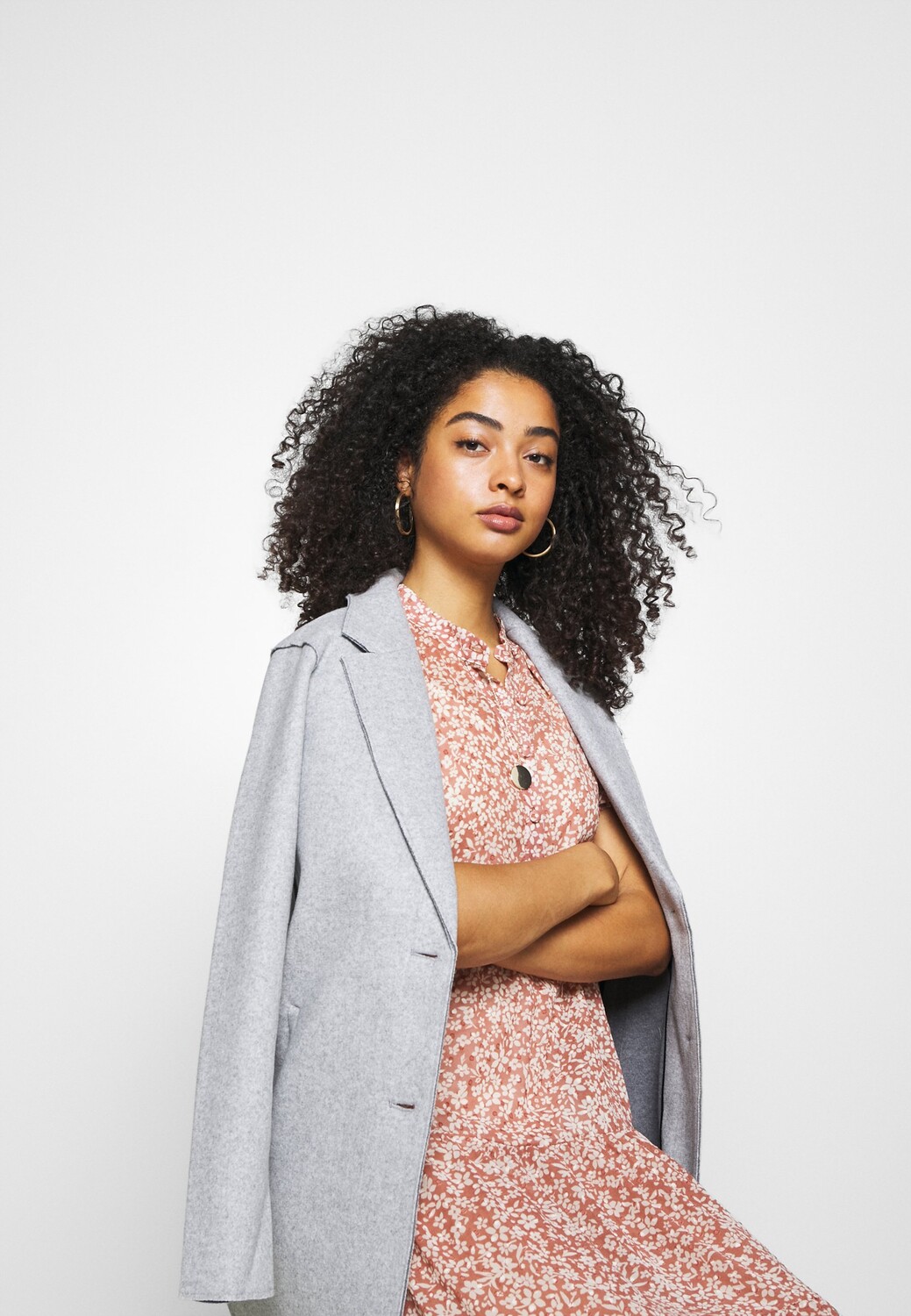Пальто классическое ONLY с глубоким вырезом, серый