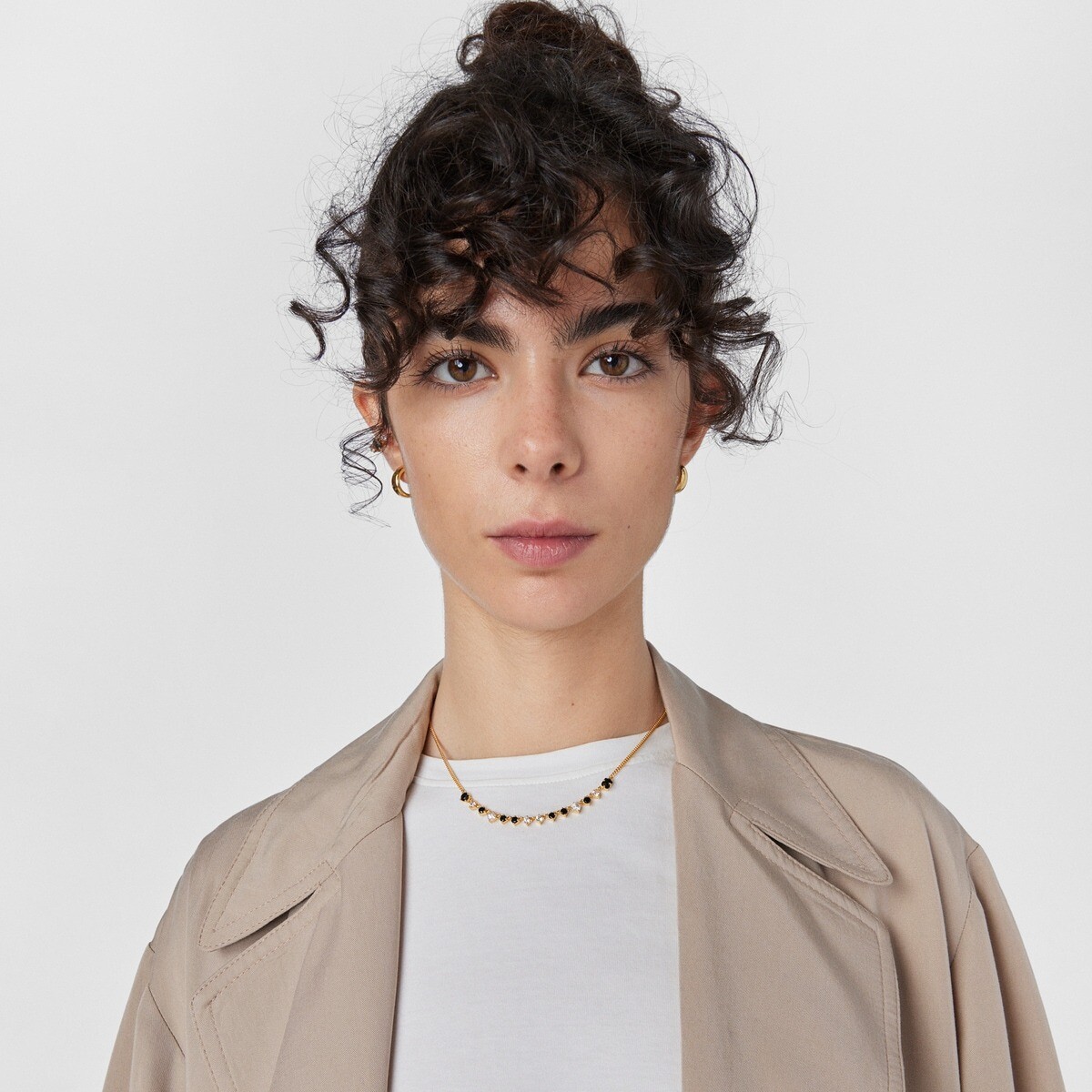 Откройте для себя это ожерелье из позолоченного серебра с ониксом и цирконами из коллекции Glaring — универсальный и современный выбор, который подчеркнет вашу врожденную элегантность.