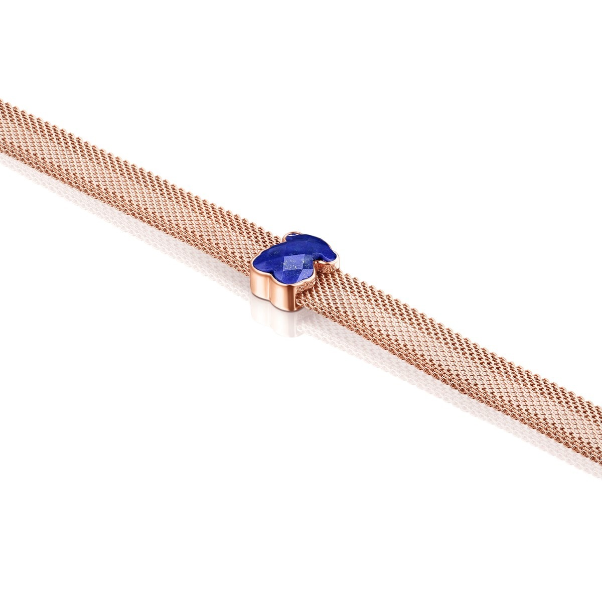 Колье TOUS Mesh Color из розовой IP-стали с медведем из лазурита и ободком из розового серебра с позолотой.